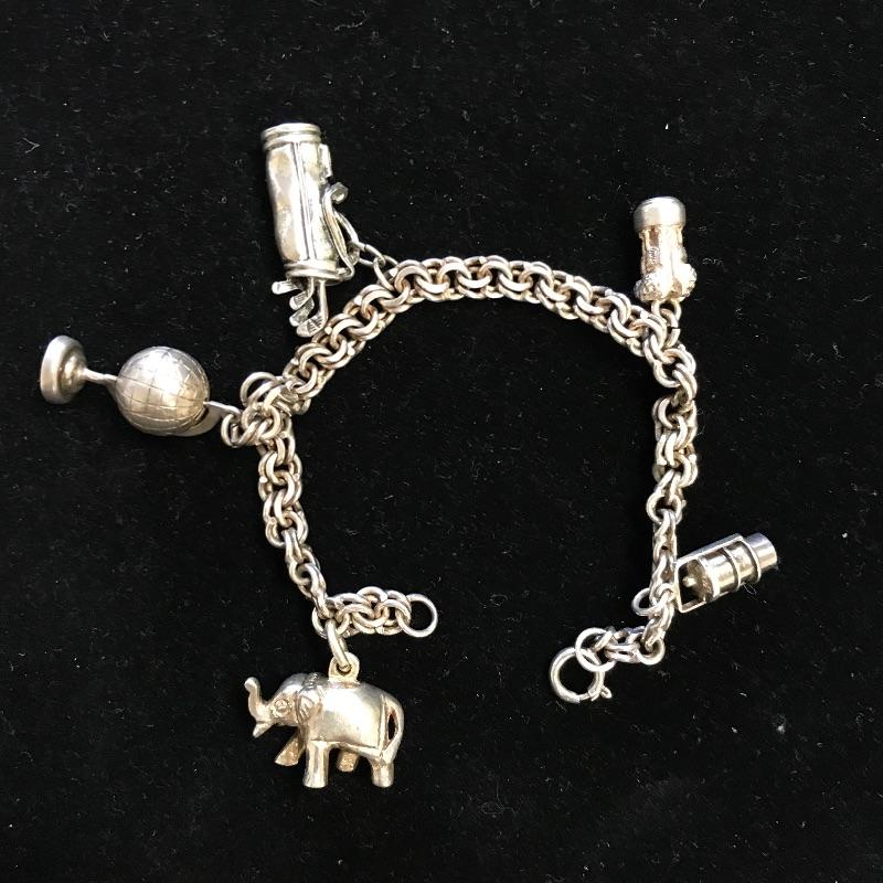 Lot 7 - Silver Charm Bracelet & Cuff Links