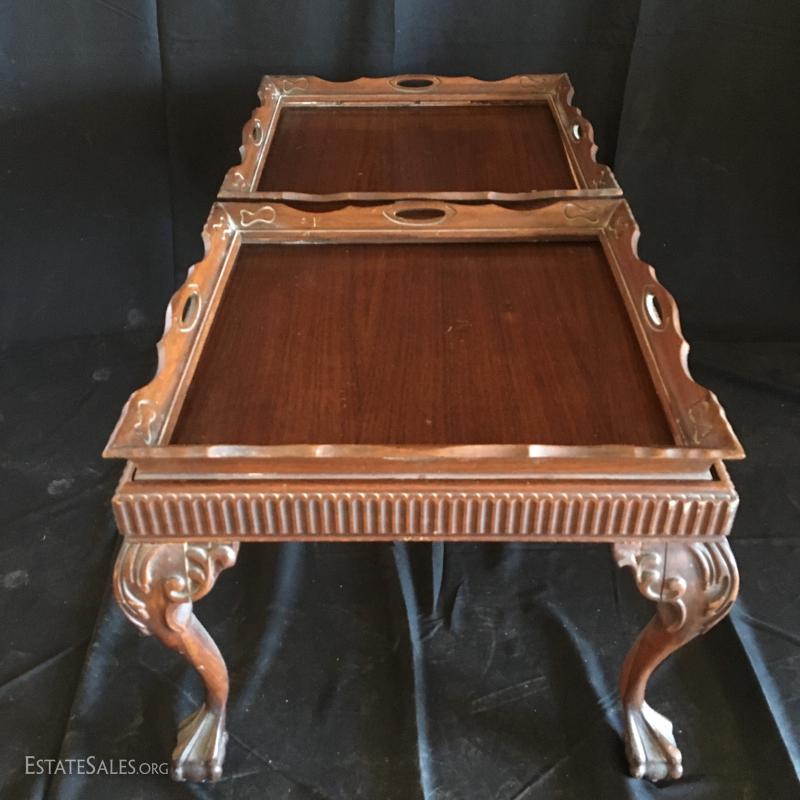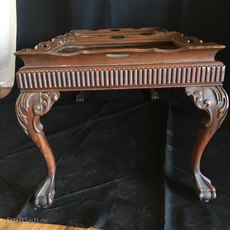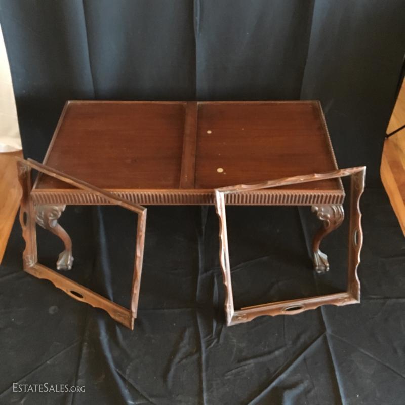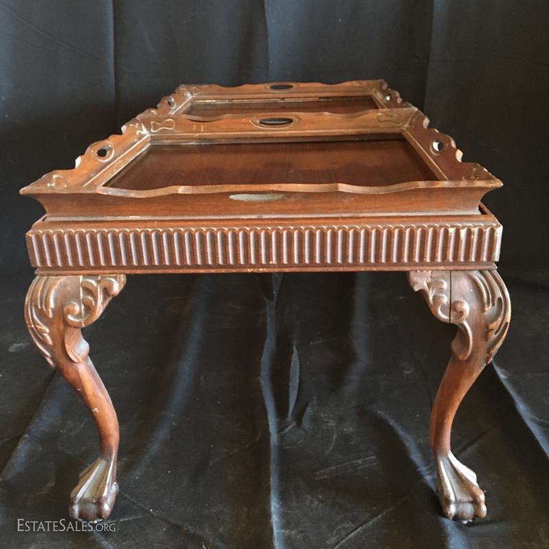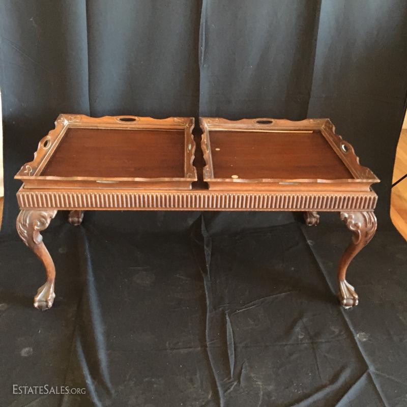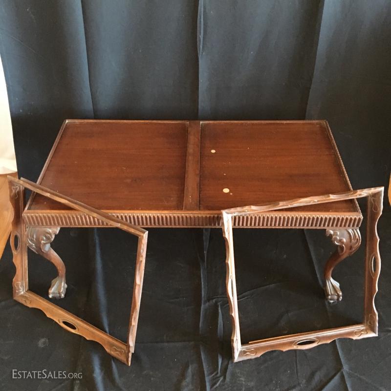 Wood Coffee Table with 2 Removable Frames on top. Claw foot. Side detail. Small spot on top- see photos.