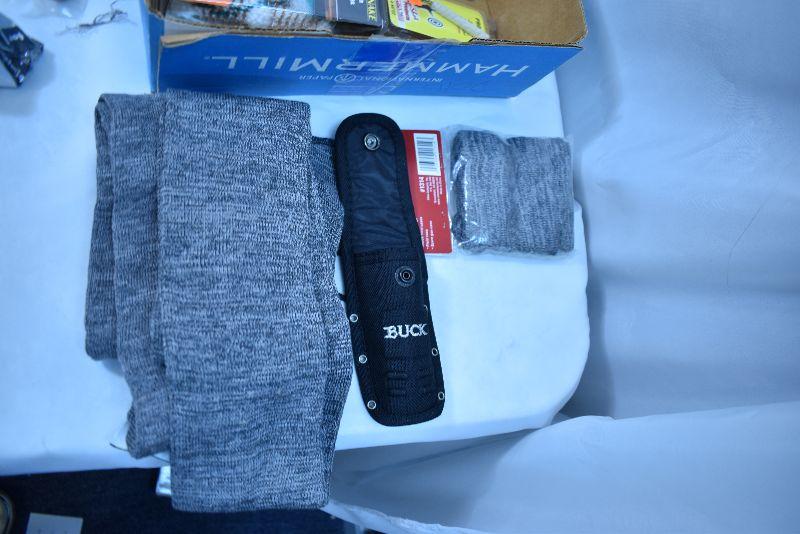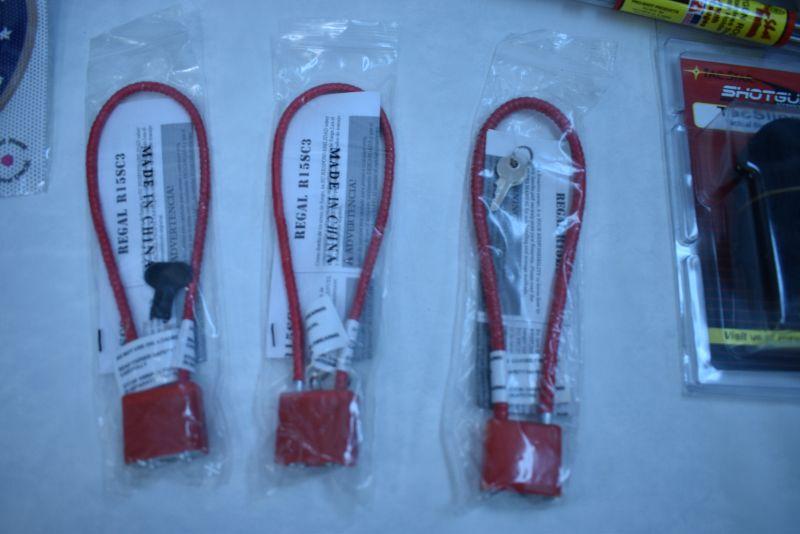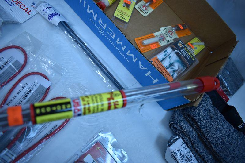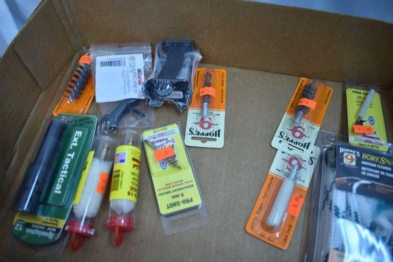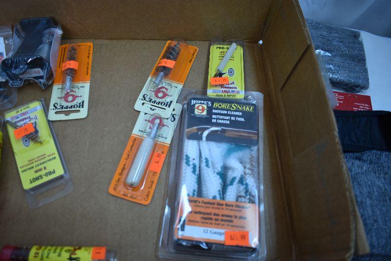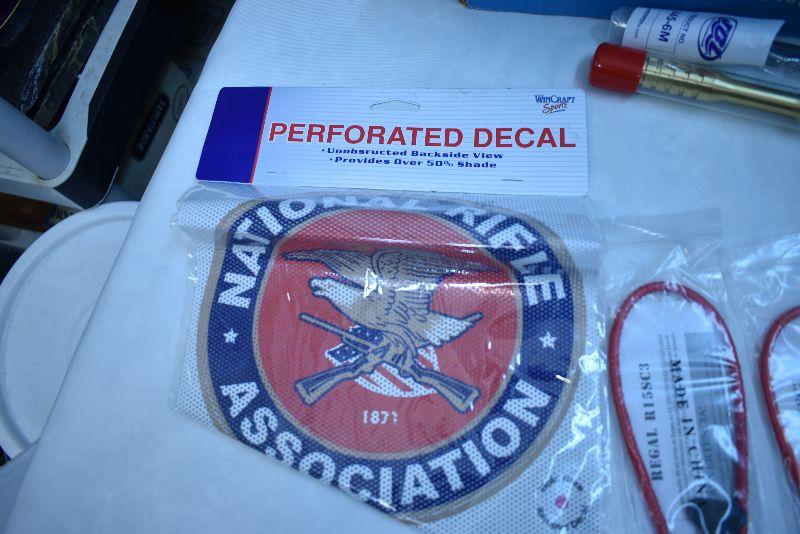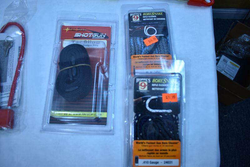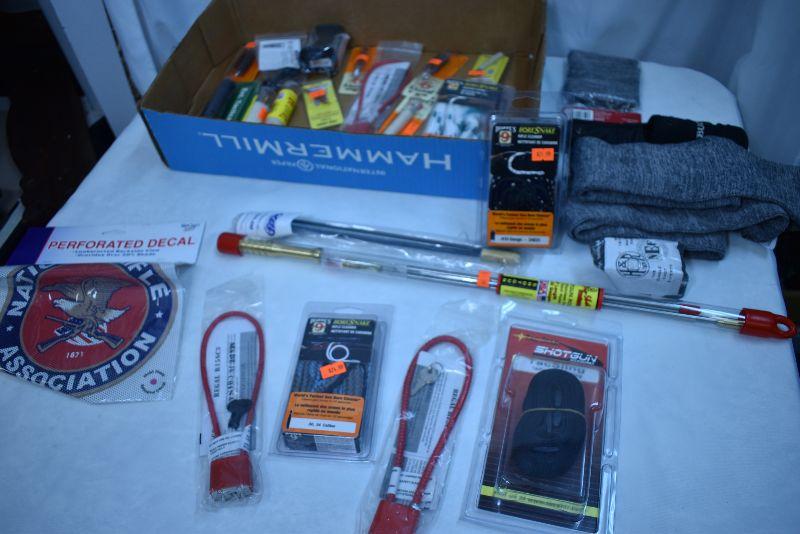 Safety locks, rifle socks, bore snakes, NRA decal and more.
