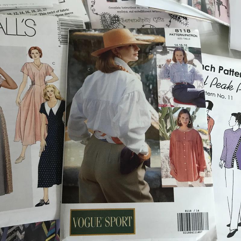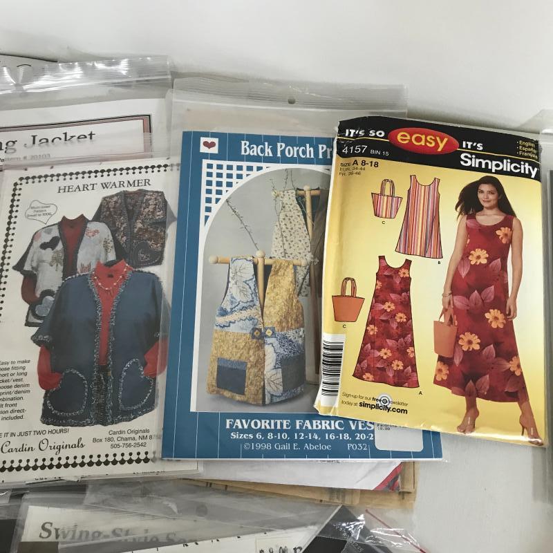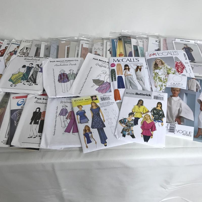 Lot contains dozens of sewing patterns. Vogue, Butterick, Burda, Park Bench Pattern Company and more. See pics. Shipping available.