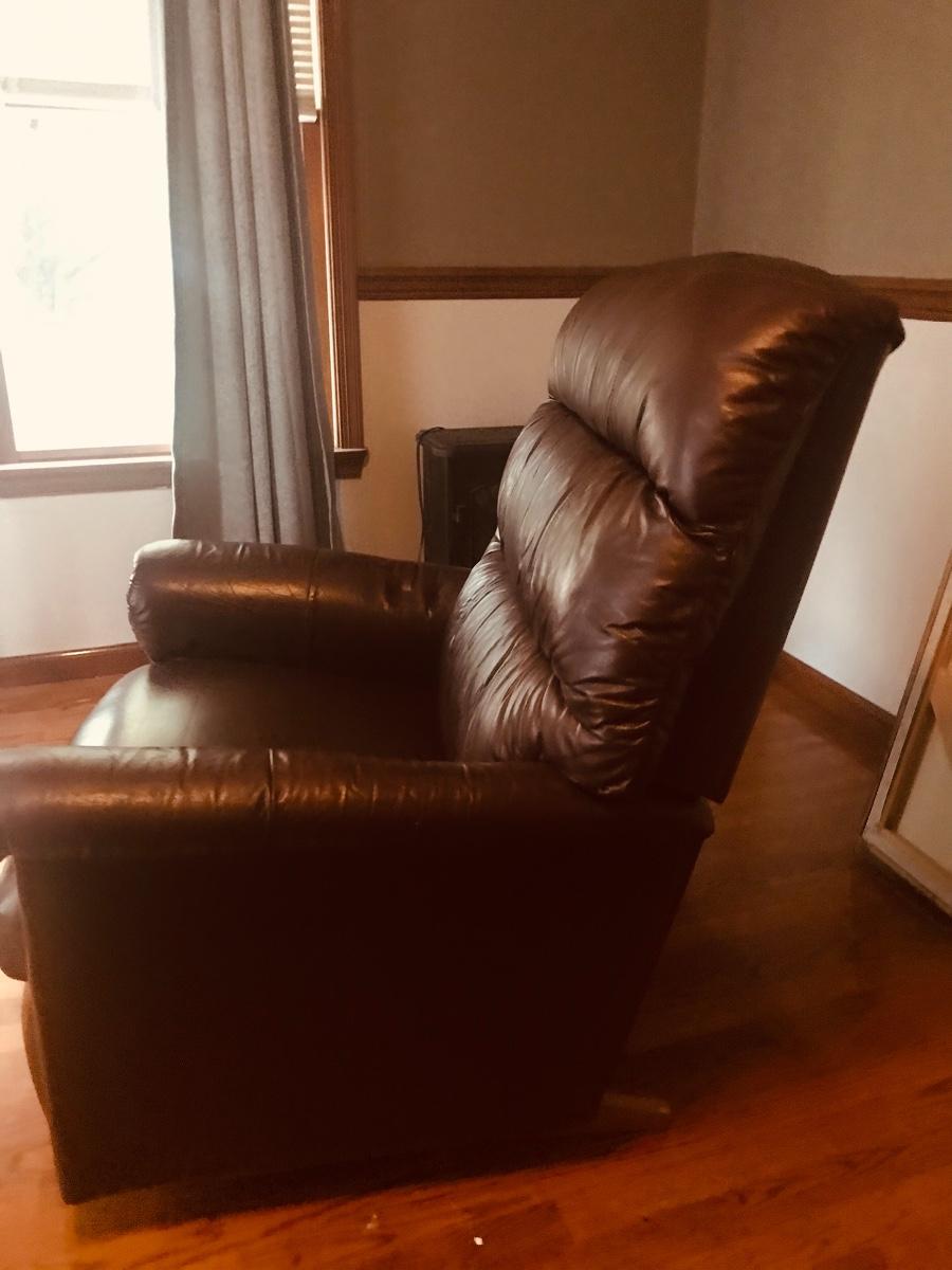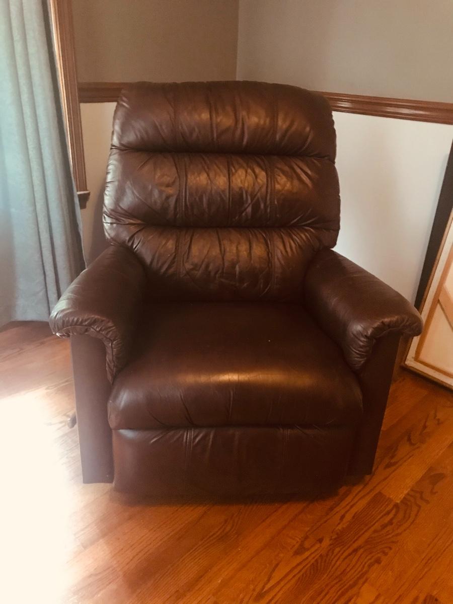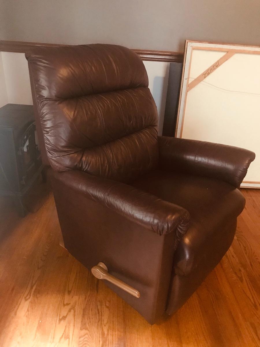 Very comfortable leather recliner by Lazy Boy. Just the right size for those smaller spaces. Like new. Please see all pictures for content of the lot, condition of the lot, and measurements if taken. Pictures are the best representation of the items listed and items are untested unless indicated in description. Thank you for looking and have fun bidding!