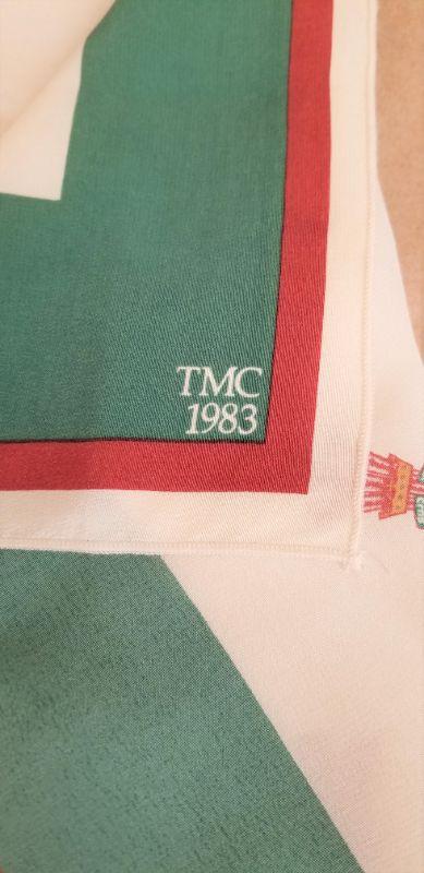 This large silk scarf is a real beauty - favor from The Mystic Club, dated 1983. Appears to be in excellent condition, but has been gently used. Measures a generous 30" x 27.5". The Mystic Club is a "social" uptown group that does not parade, but hosts a Ball during the Carnival season. Their favors are collectible and relatively scarce. I guarantee you this scarf was over $100.00 new.