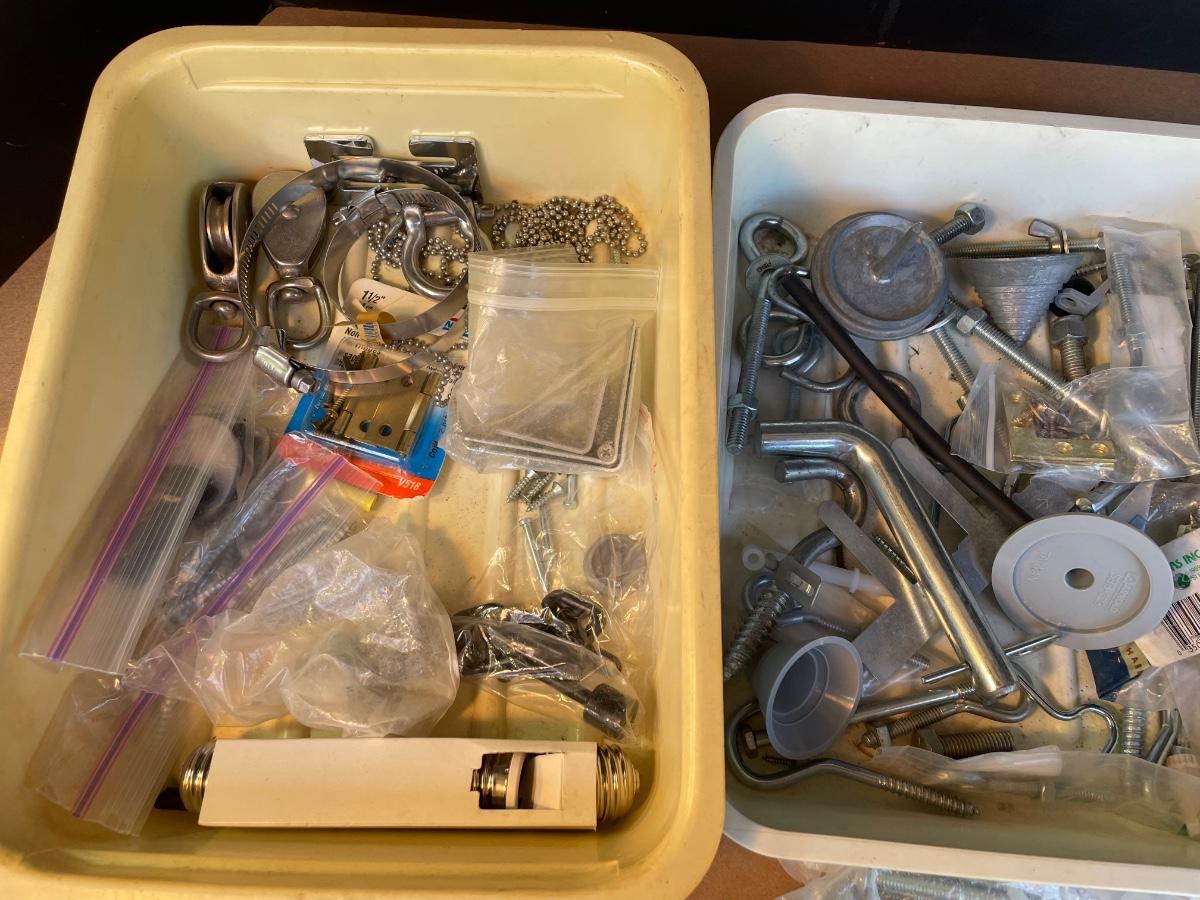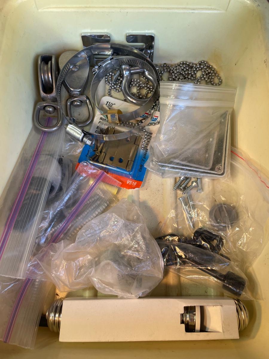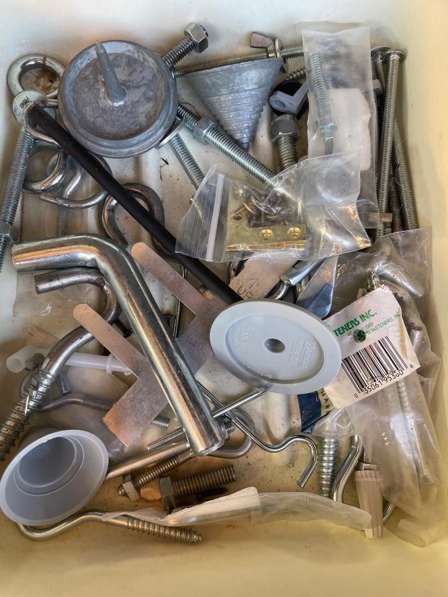 Large assortment of bolts, cotter pins, pulleys, etc.