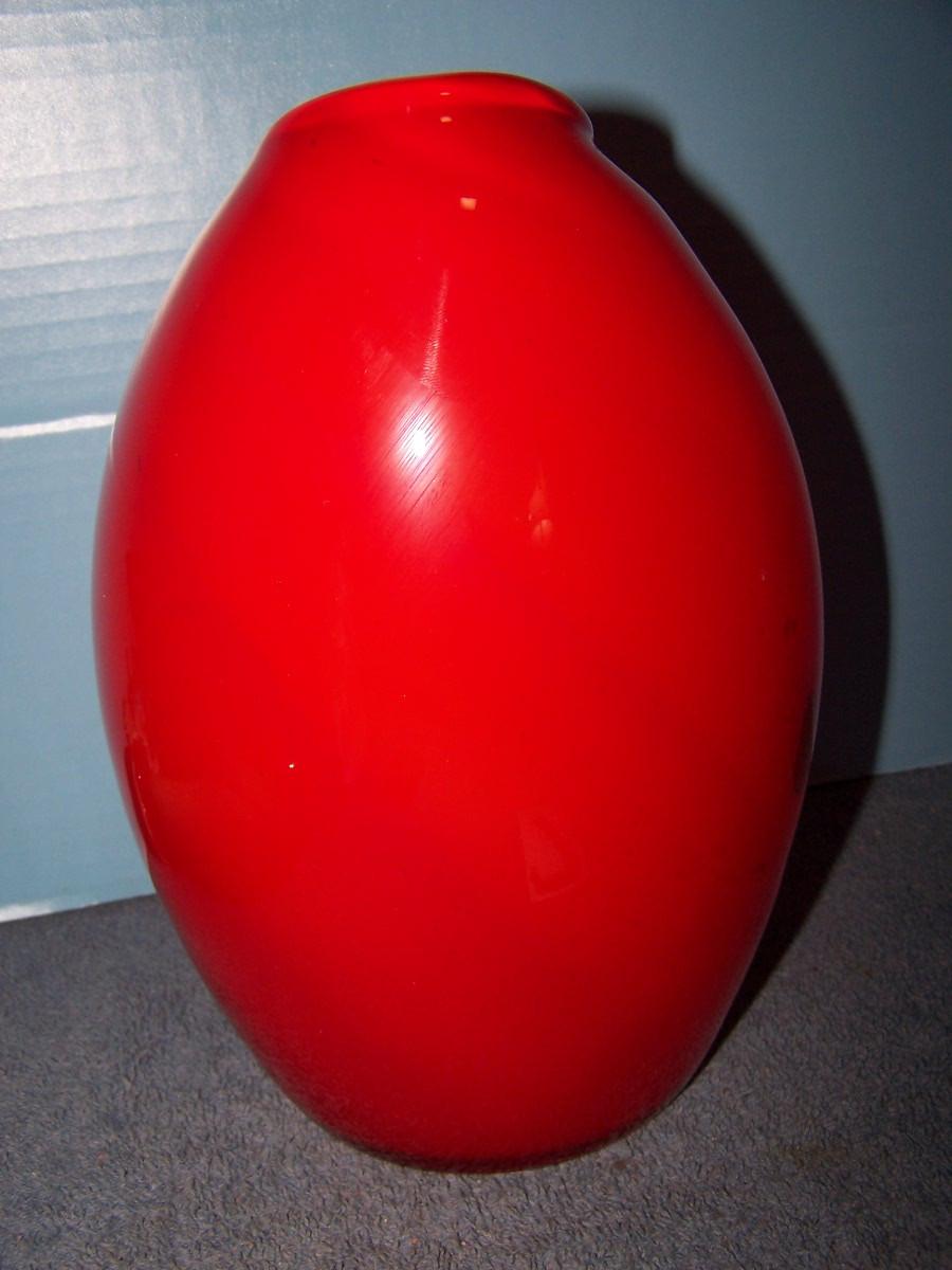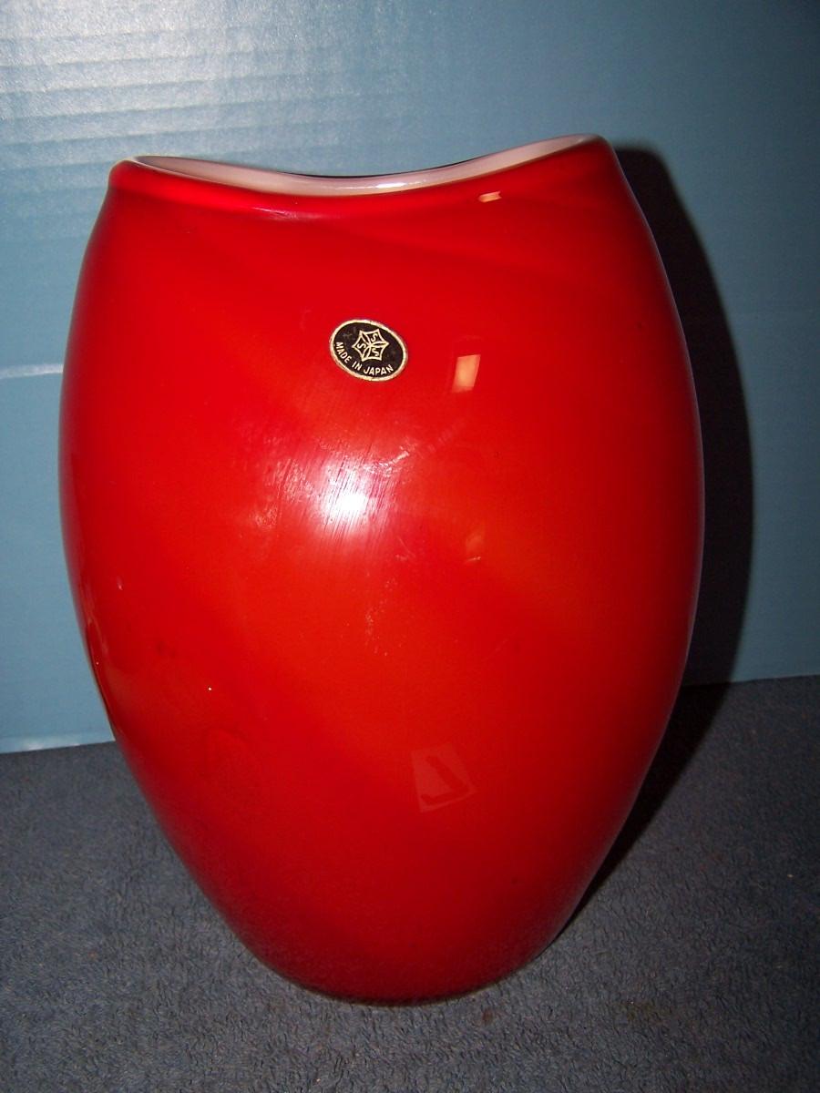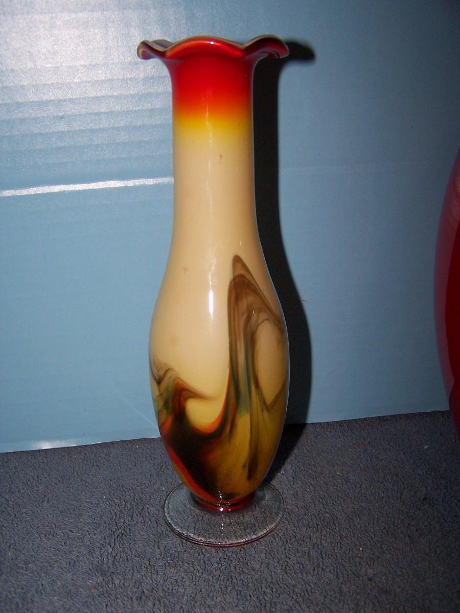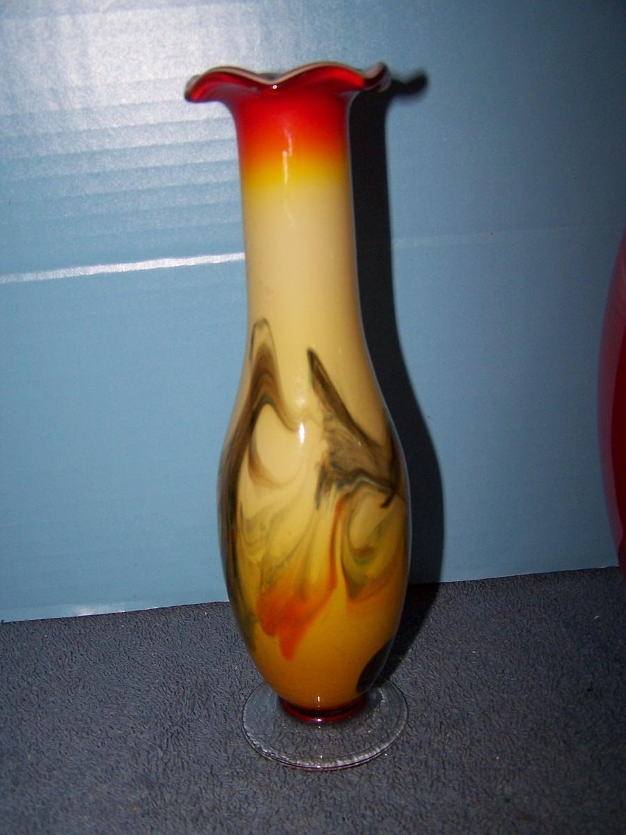 GREAT VINTAGE MCM ART GLASS UNMARKED ORANGE VASE IS 8 INCHES TALL LIGHT WEAR