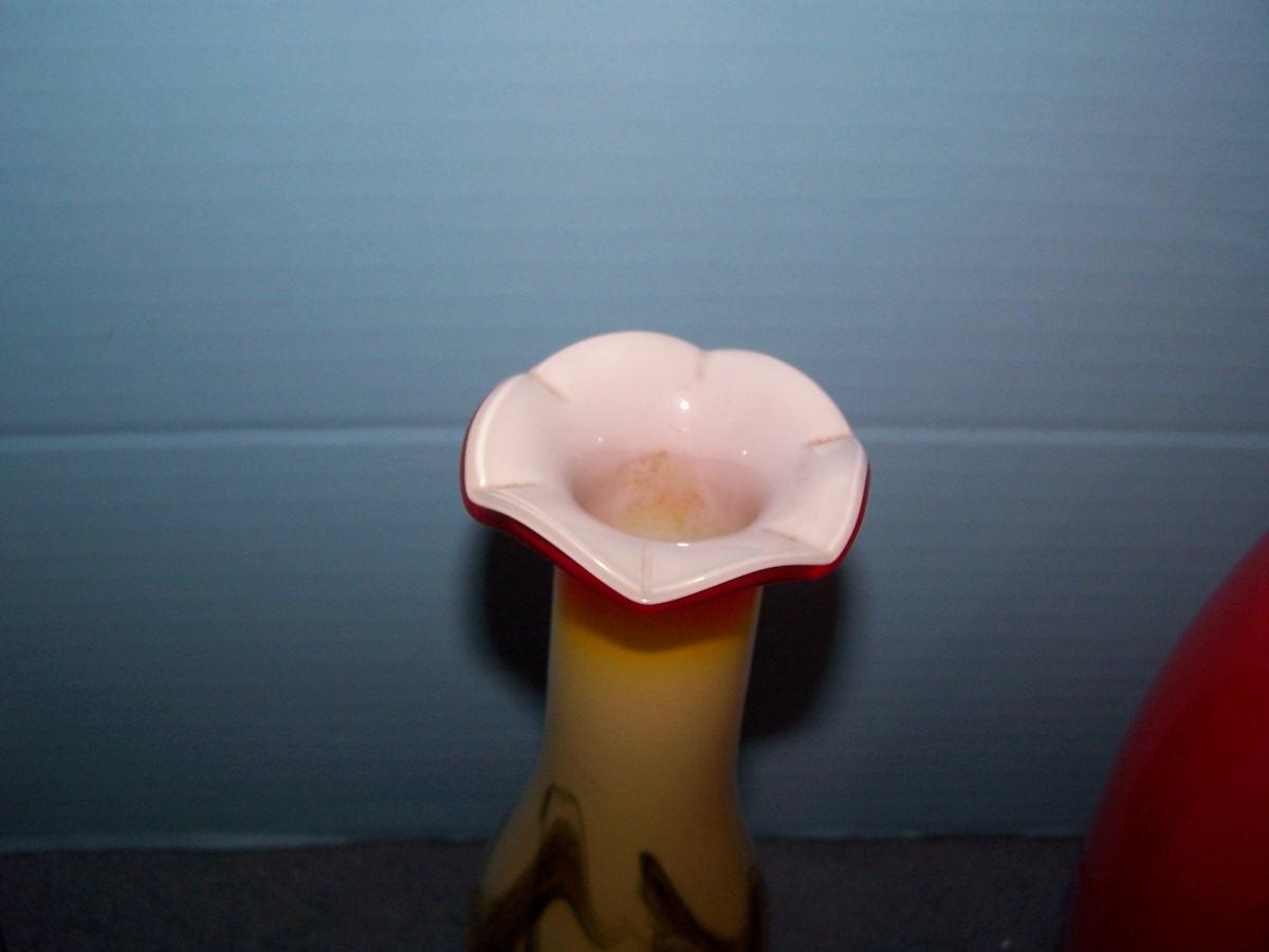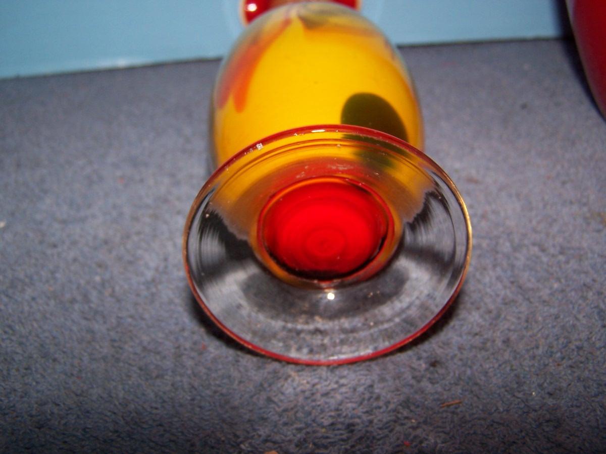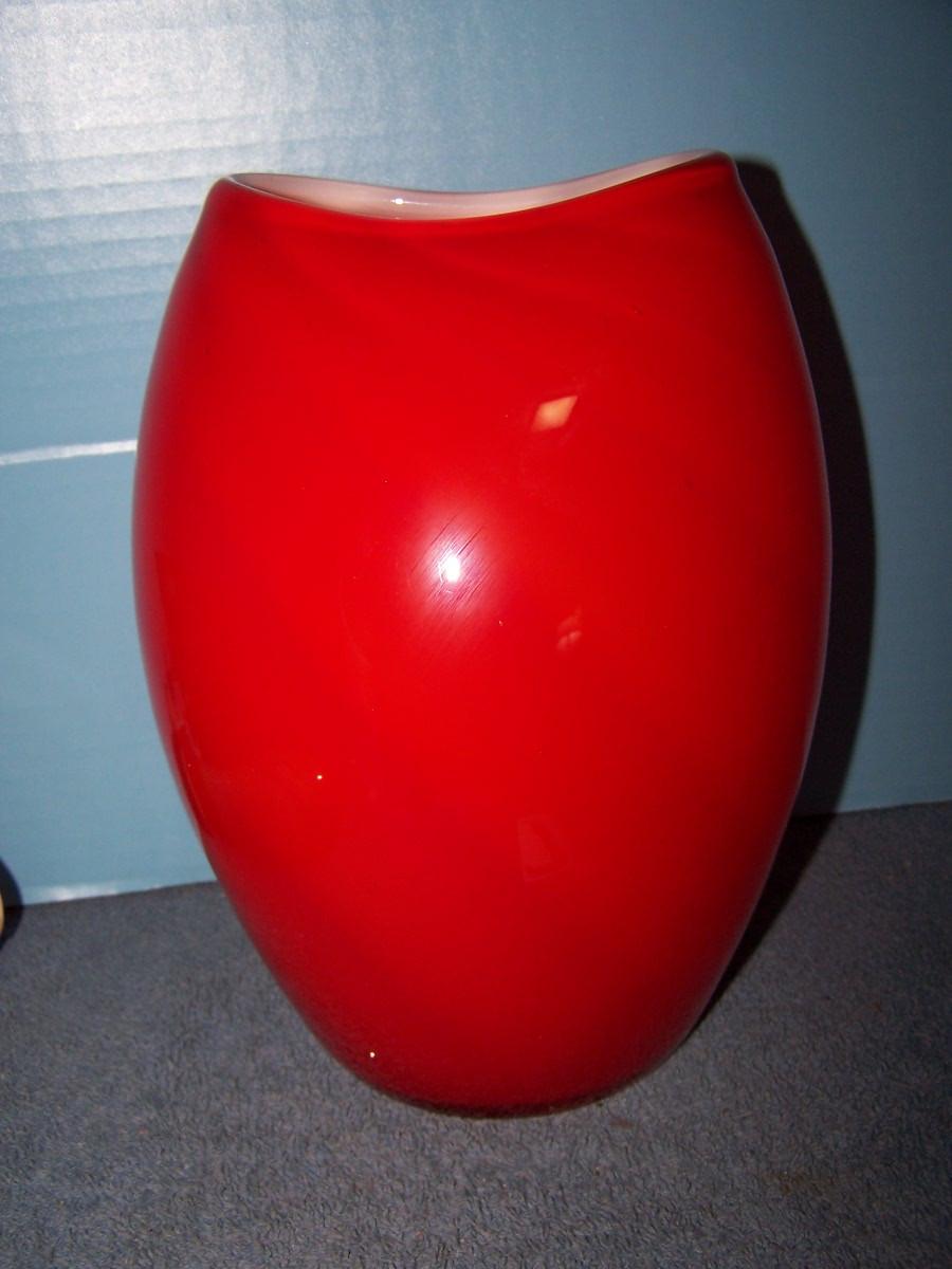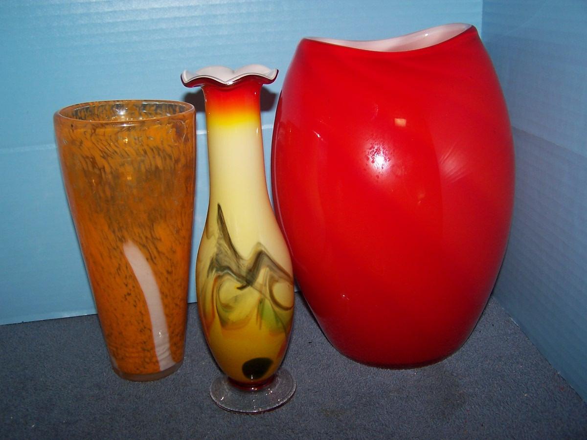 GREAT VINTAGE MCM ART GLASS UNMARKED ORANGE VASE IS 8 INCHES TALL LIGHT WEAR