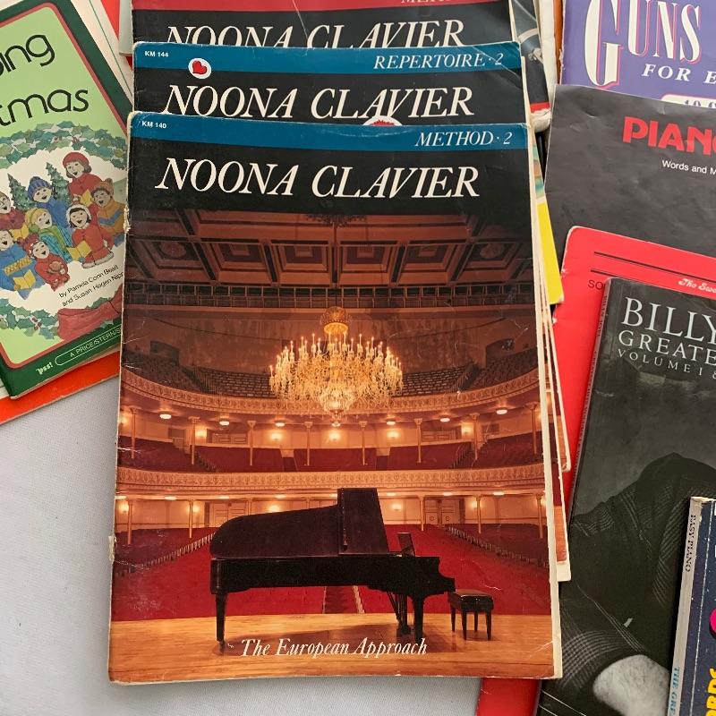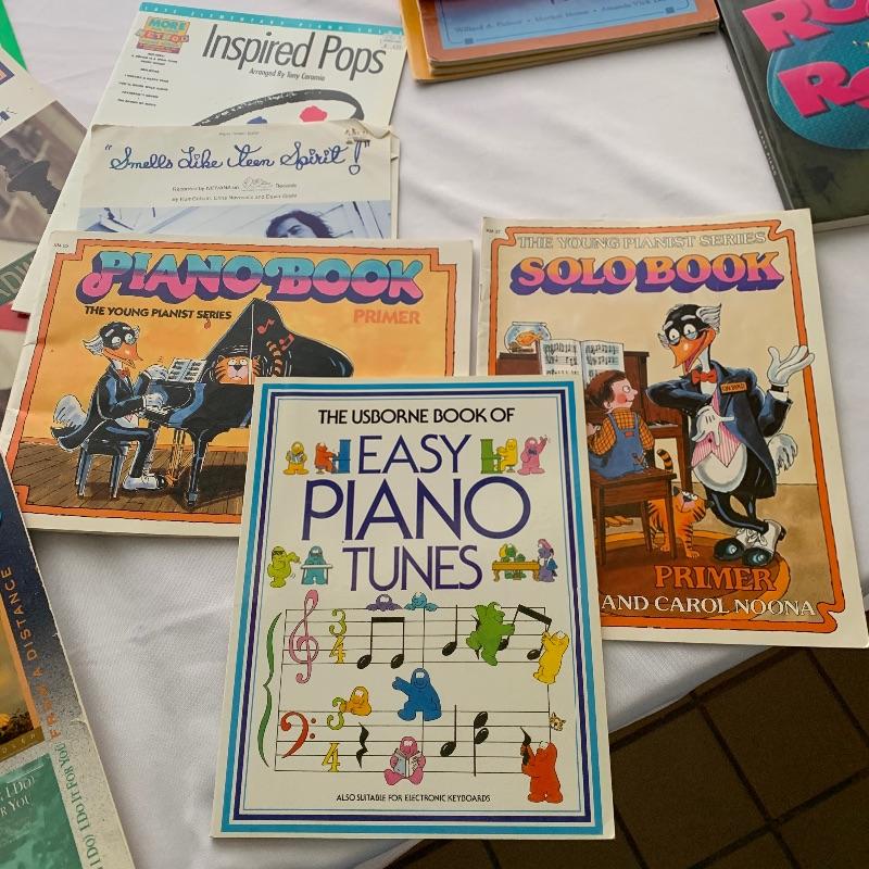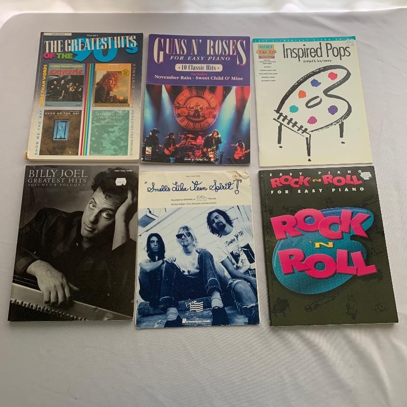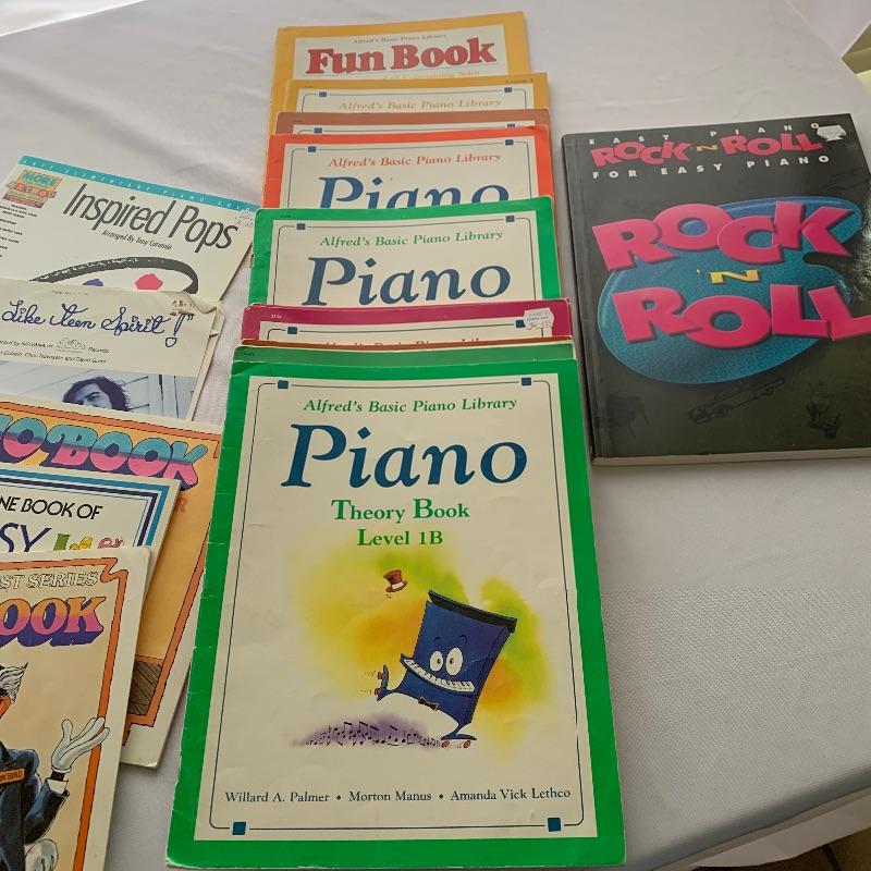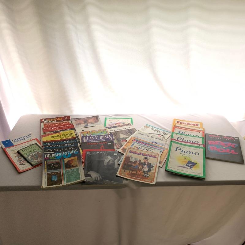 Music books. A great selection of music books includes Billy Joel, Nirvana, forty pop hits, Guns N Roses and a large selection of lesson books Like Alfred’s Basic Piano Library levels 1,2,3. . A great start for the budding musician.