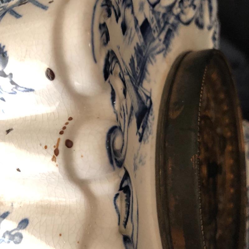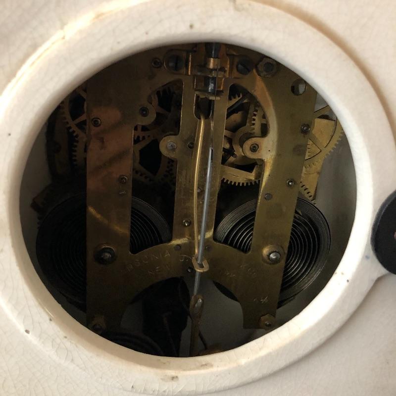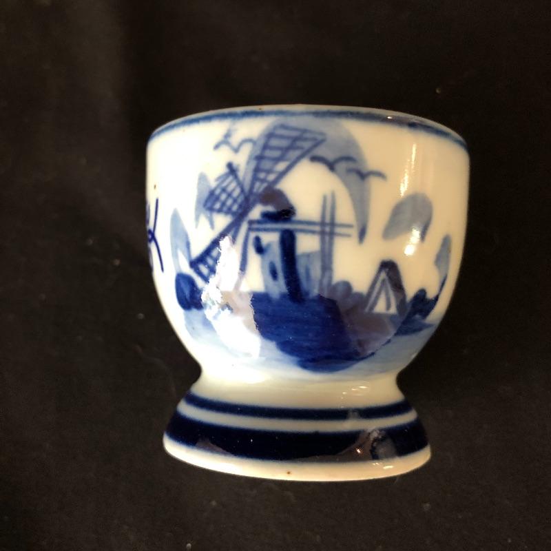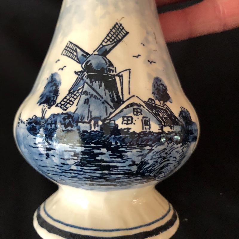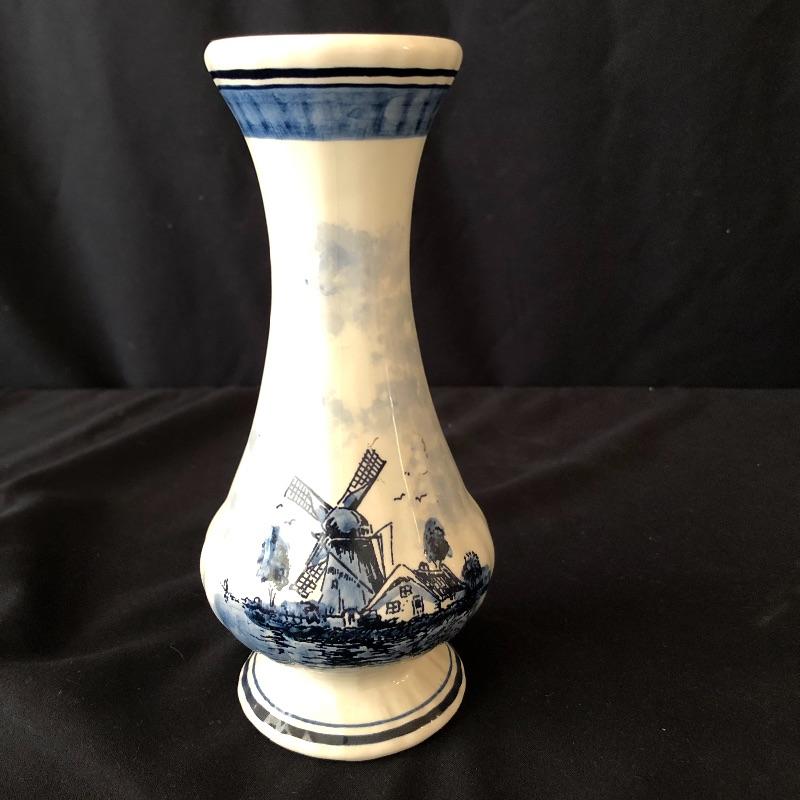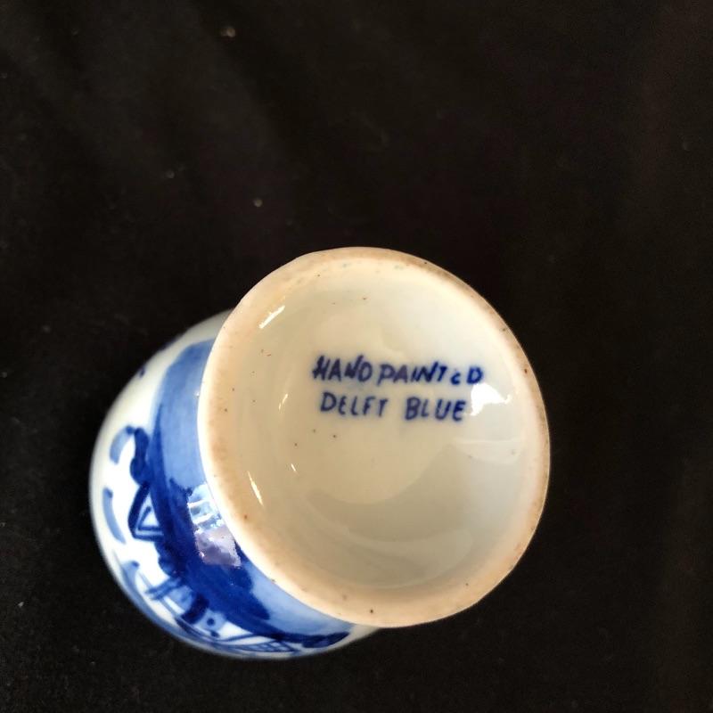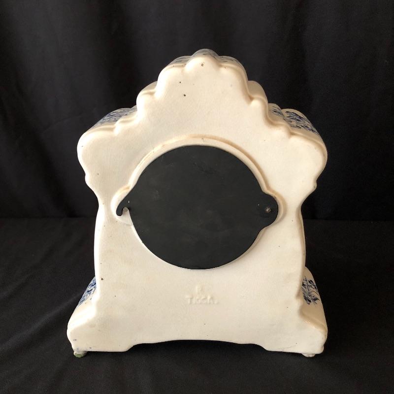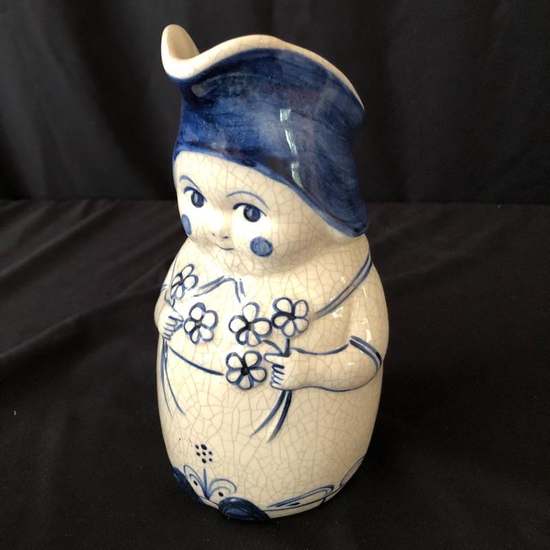 This Dutch inspired assortment of porcelain includes a beautiful mantle clock that comes with key. The clock depicts a Dutch scene with an ornate clock face; it winds up and the pendulum does work, but we cannot guarantee beyond that. It has a makers mark that appears to say Tioca or something similar. Also included is a vase numbered 447 and marked Delfts of Holland, a quaint Dutch style pitcher and an egg cup.