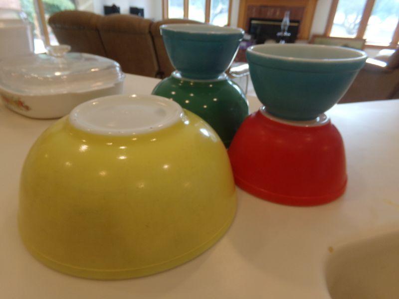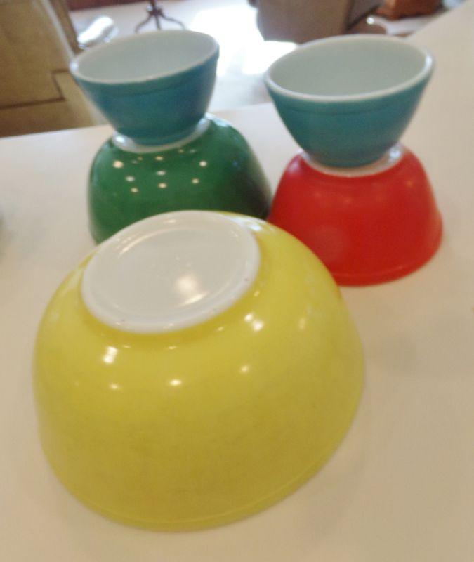 THE RED BOWL ISN'T AS SHINY AS IT SHOULD BE. THERE ARE NO CHIPS OR CRACKS IN ANY OF THE BOWLS