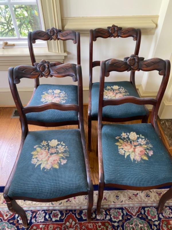 Lot # 7 Set of Four Antique Needlepoint Seat Chairs