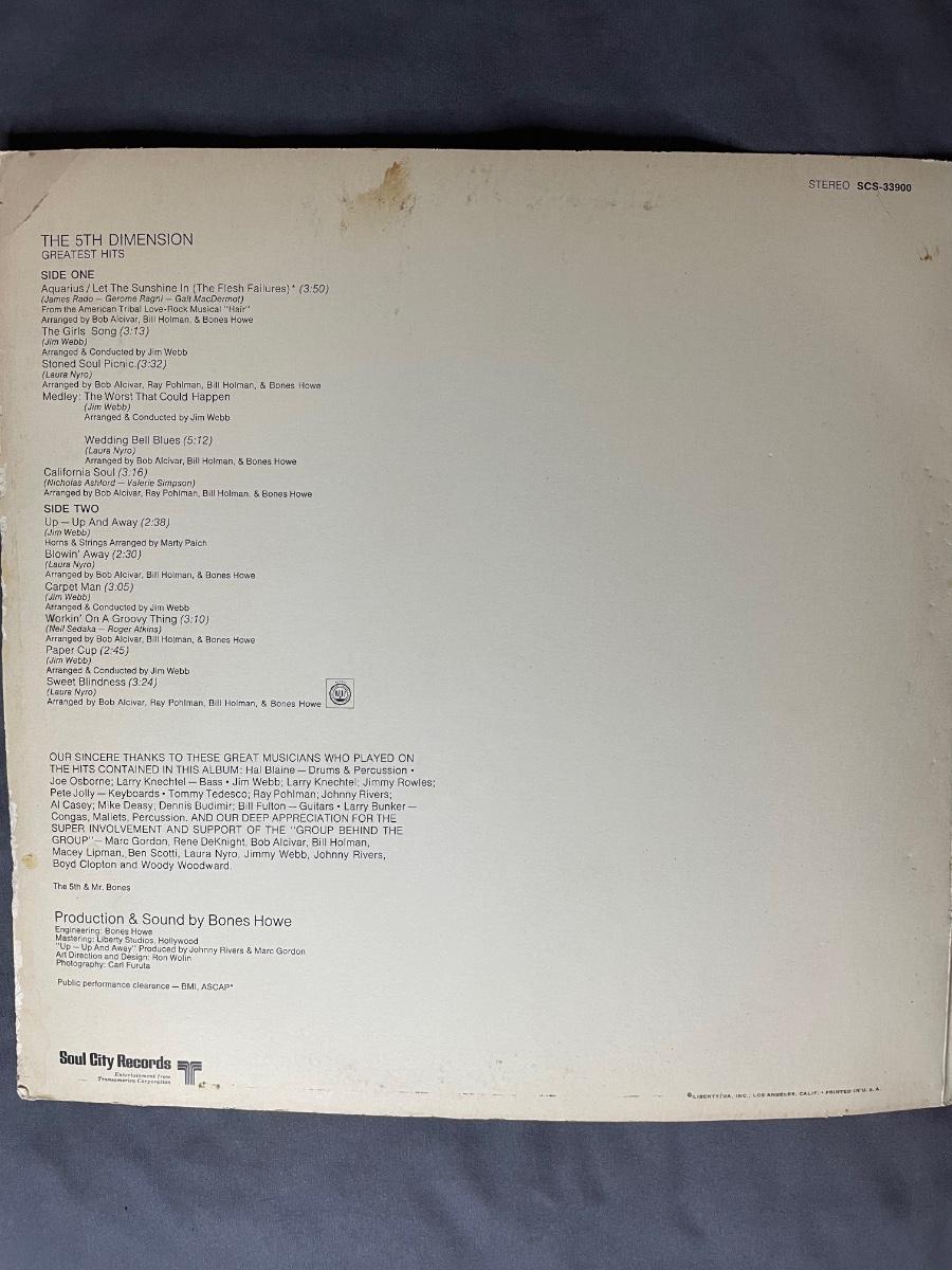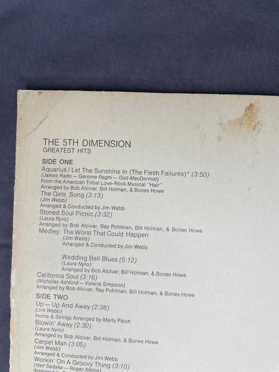 LOT 7: THE 5TH DIMENSION GREATEST HITS 1970 LP VINYL