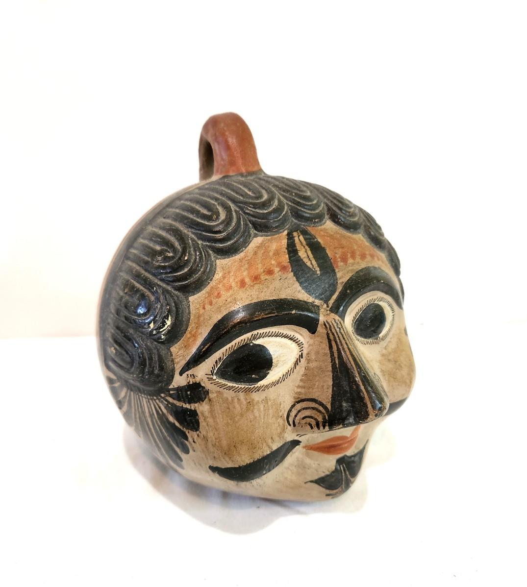 Lot #7  Vintage Tonola Mexican Pottery Head Bank