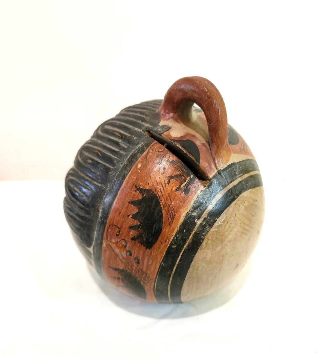 Tonala Pottery from Mexico is highly collectible - here is a traditional head bank, burnished pottery, vintage condition. 7" tall, 6" wide. This is a classic form - a beauty!