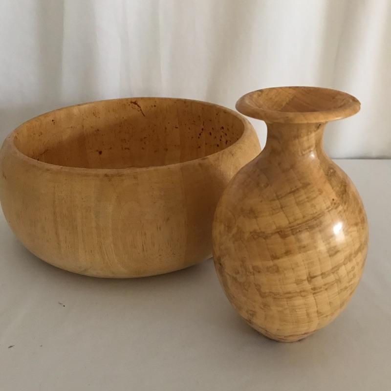 Lot 7 - Wooden Bowl & Bob Hastings Vase
