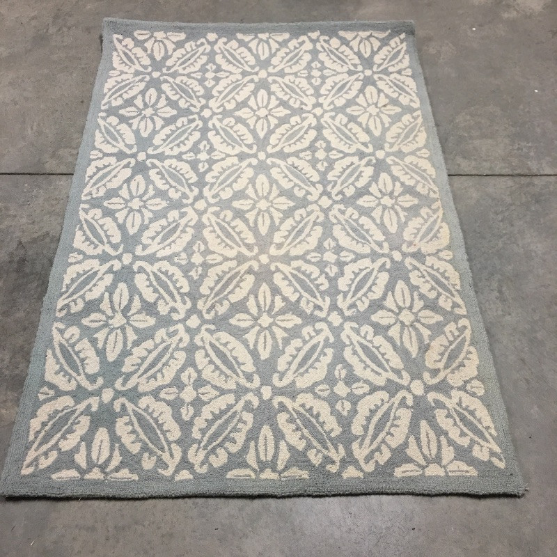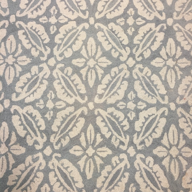 This Safavieh throw rug is 100% wool pile. A great rug for any room in the house in gray and cream color. Rug measures 45” x 67”.
