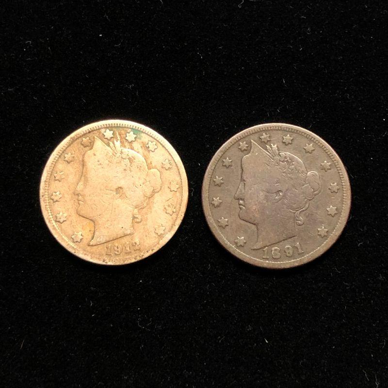 Lot 70 - 1891 and 1912 Liberty V Nickels