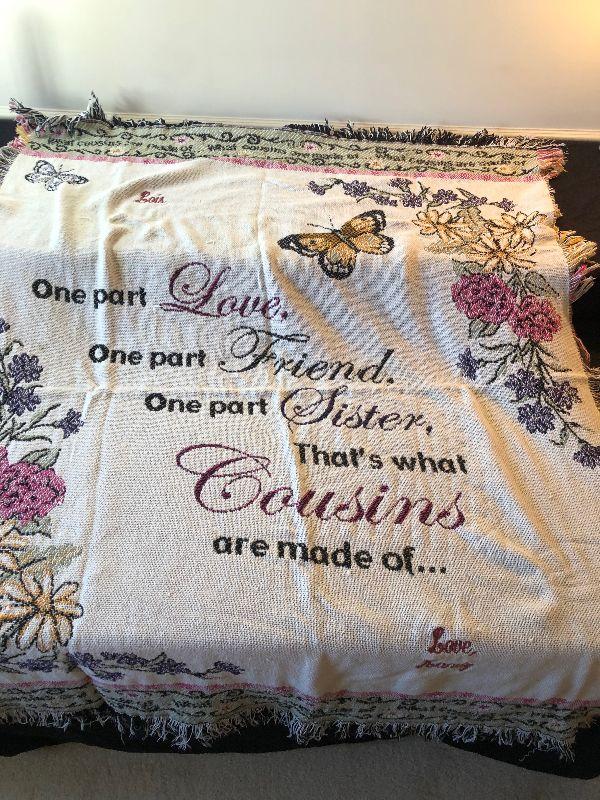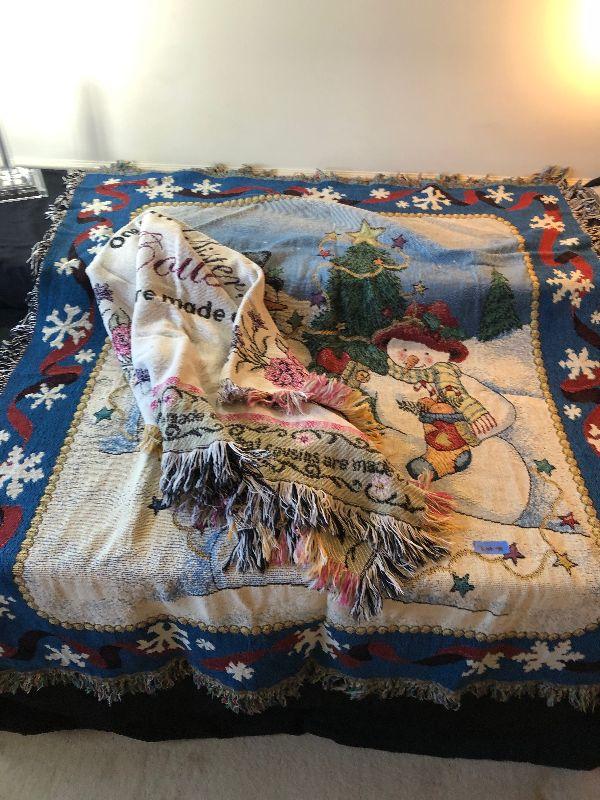 2 Large Woven Throws - Christmas and Butterfly Saying.