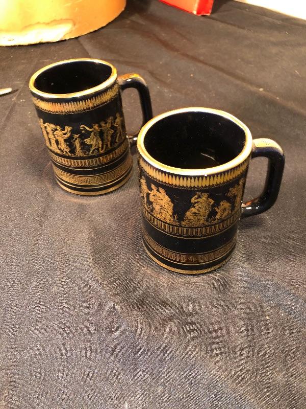 Lot 70 - 24K GOLD Hand Painted Mugs!  Made in Greece!