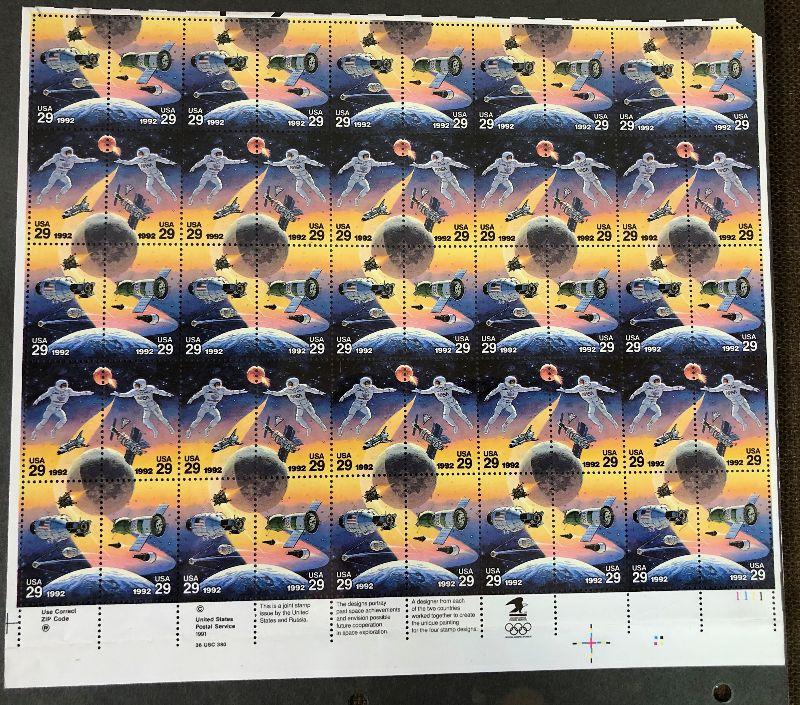 Sheet Complete 50 Un-used 1992 Shuttle Stamps. Coins, stamps and jewelry ship at $3.95 for first item and $1 for each additional item.