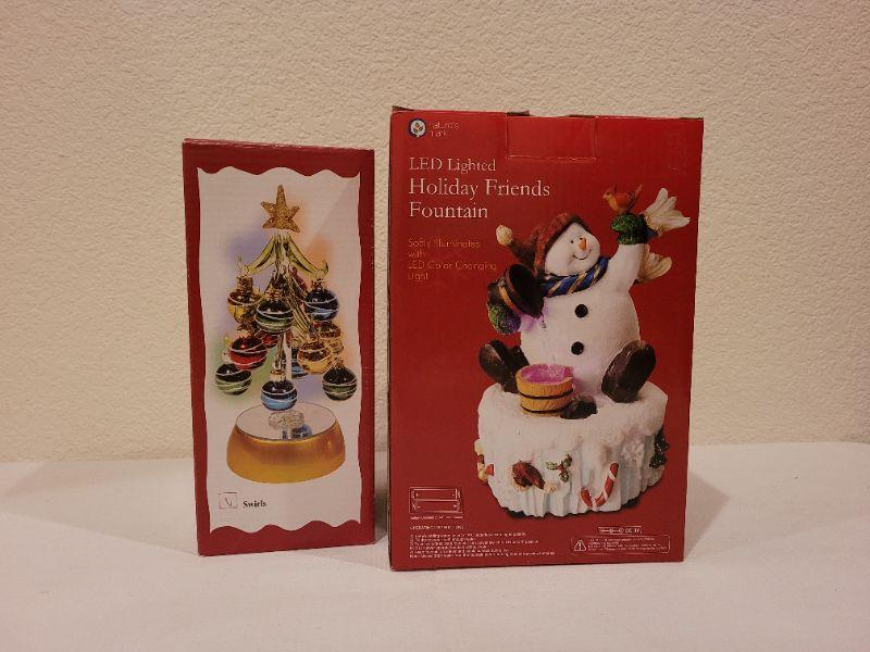 Lot 70: LED New Holiday Friends Fountain + Small Christmas Tree w/ Ornaments