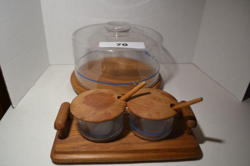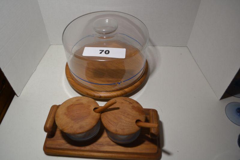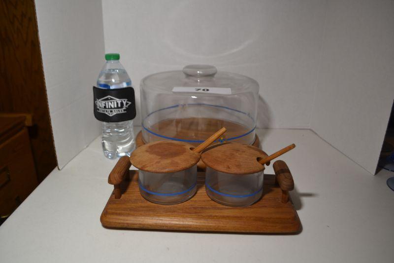 LOT 70 VINTAGE WOOD AND GLASS SERVING PIECES