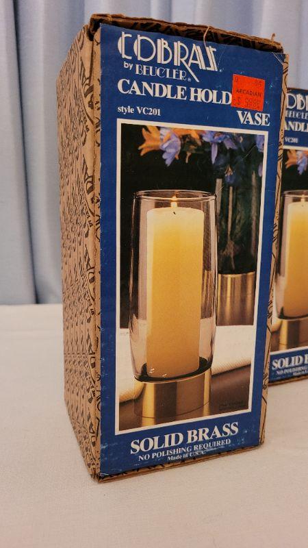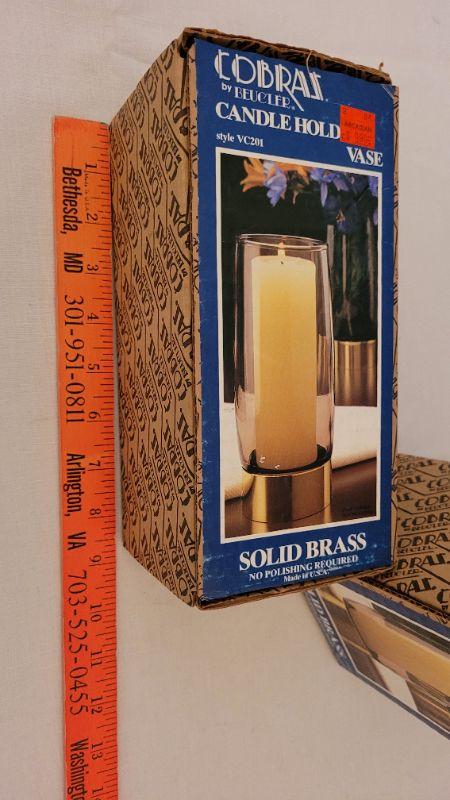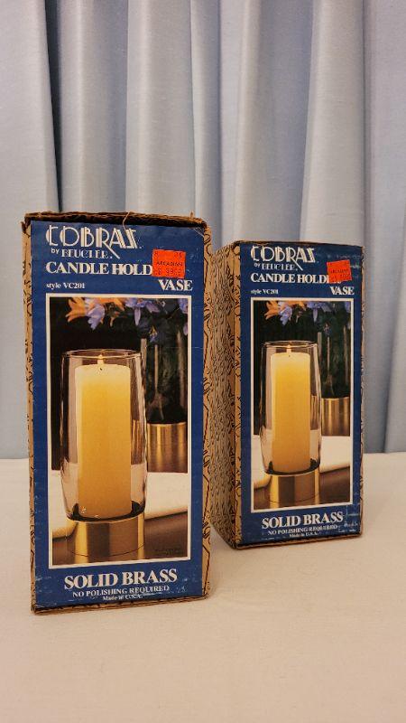 Lot 70: (2) New COBRAS Solid Brass Designer Candle Holders