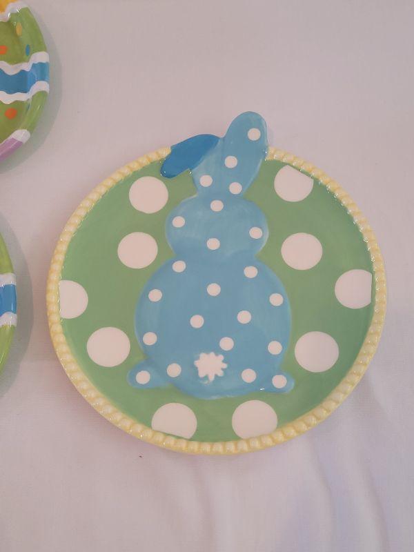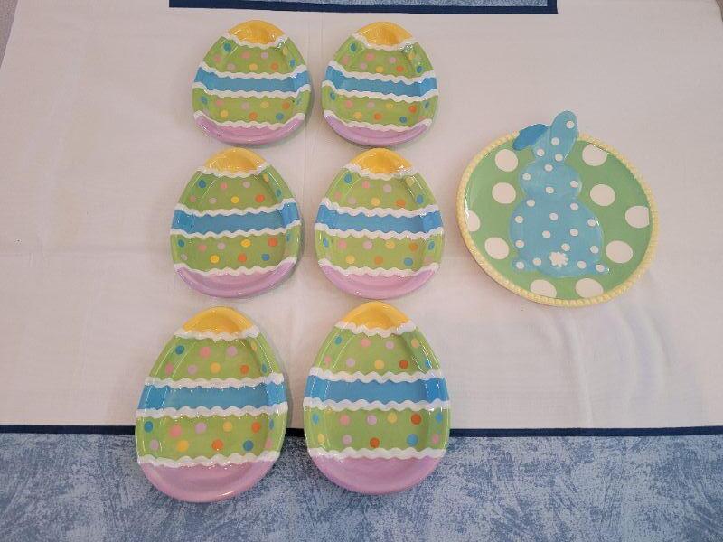 Lot 70: New (6) Easter Egg Plates and (1) Round Bunny Plate