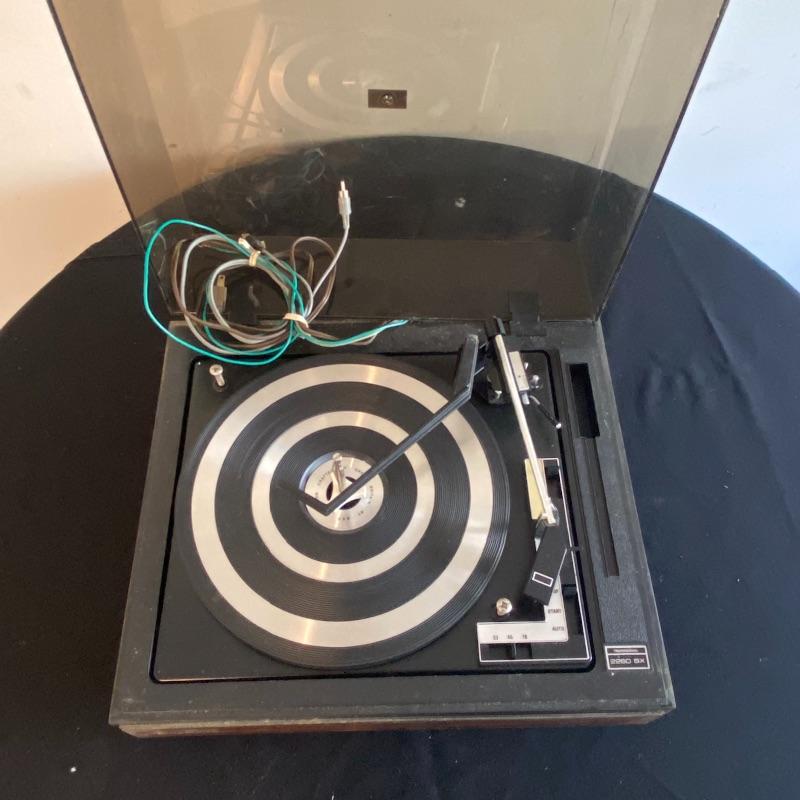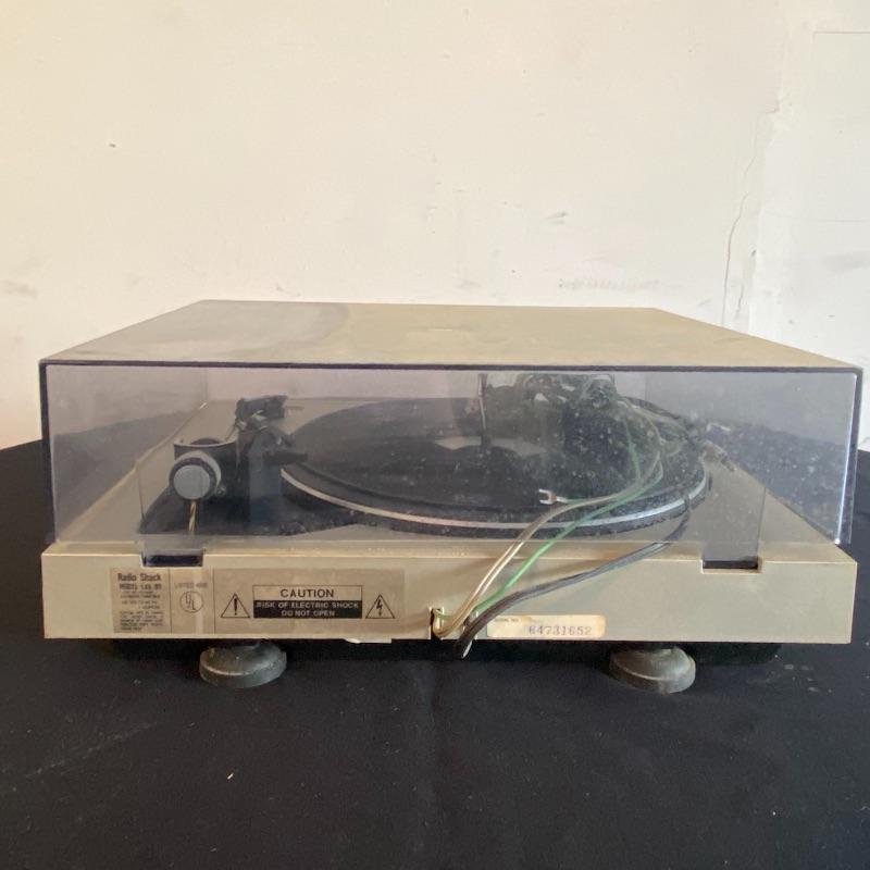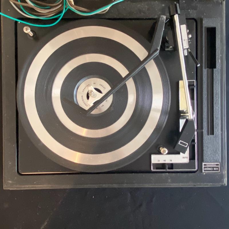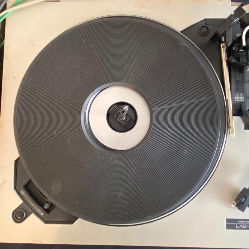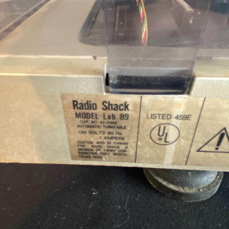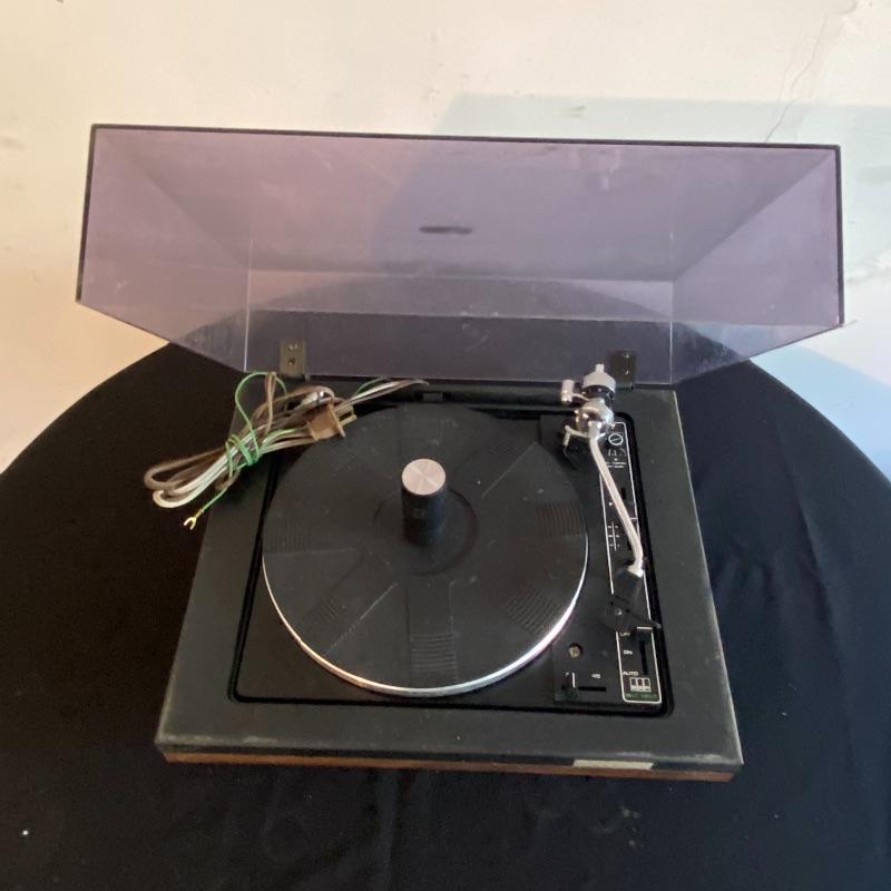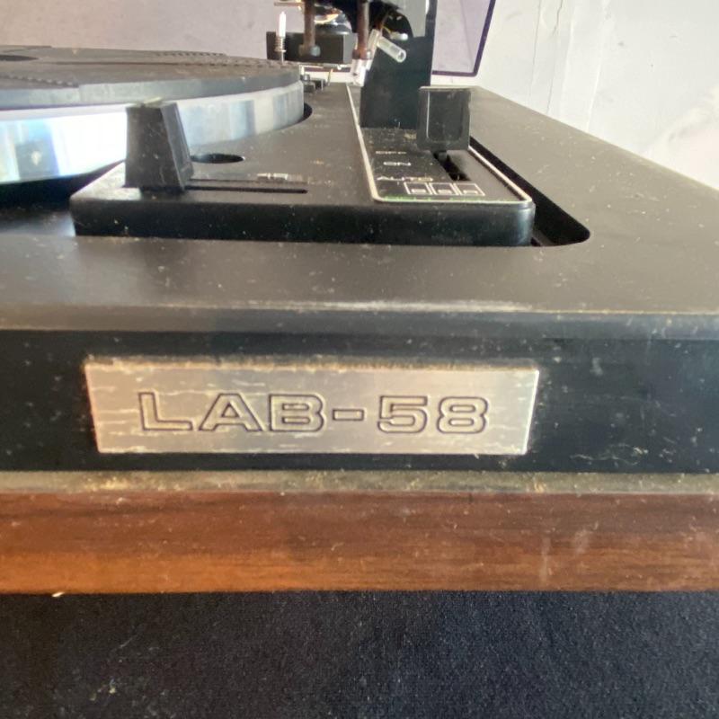 Lot includes three turntables. The first turntable is a BSR LAB 58 0106. Turntable sits in a plastic wood-like base with plastic lid attached by hinges. Chords included and spinning when tested. Second BSR Turntable is a lab 89. Serial number 64731652. Turntable sits in gray vase with adjustable legs. Cords included and powered on with humming noise when tested. Third turntable is a BSR2260BX and sits in black plastic base with top lid. Cords included but start button was jammed. See photos!