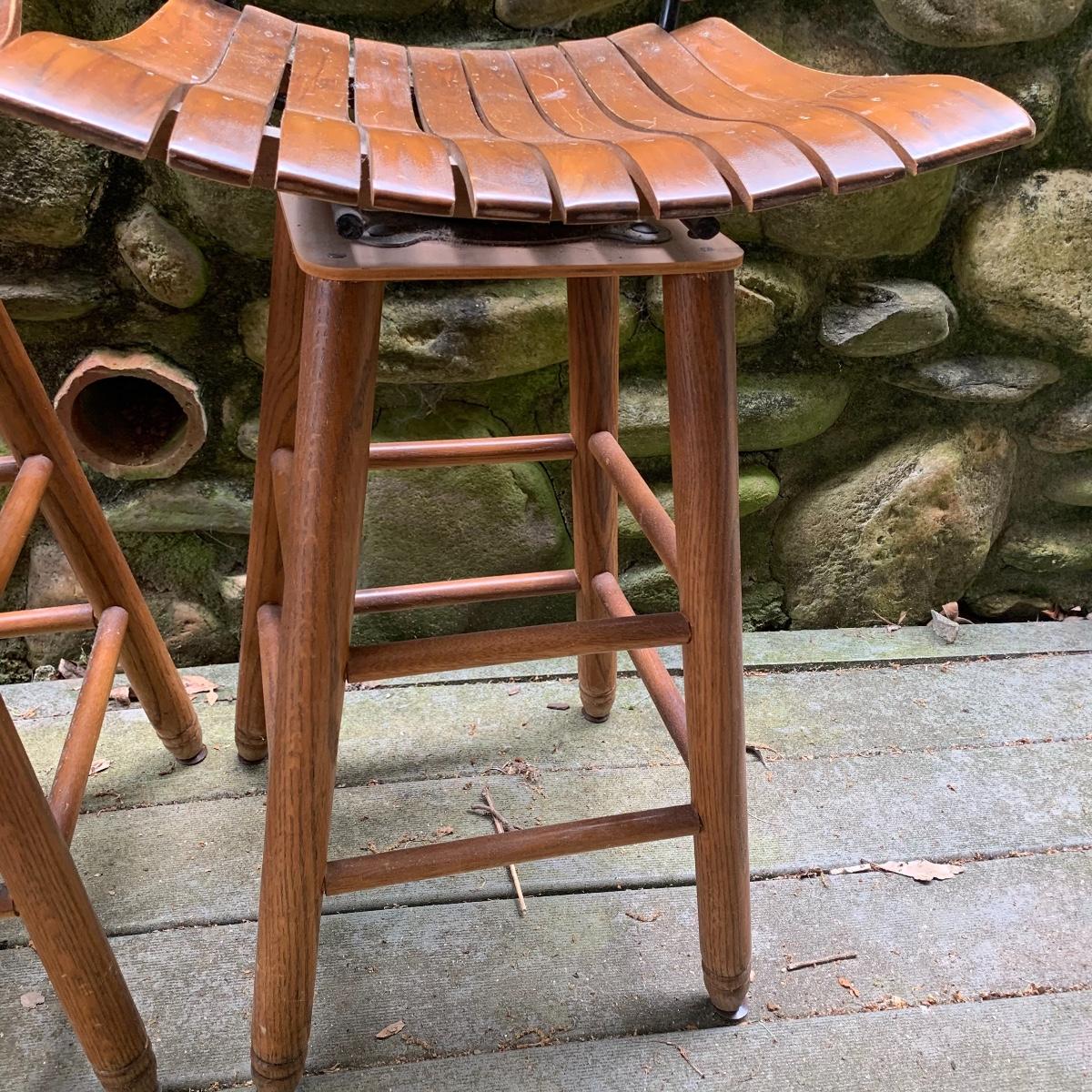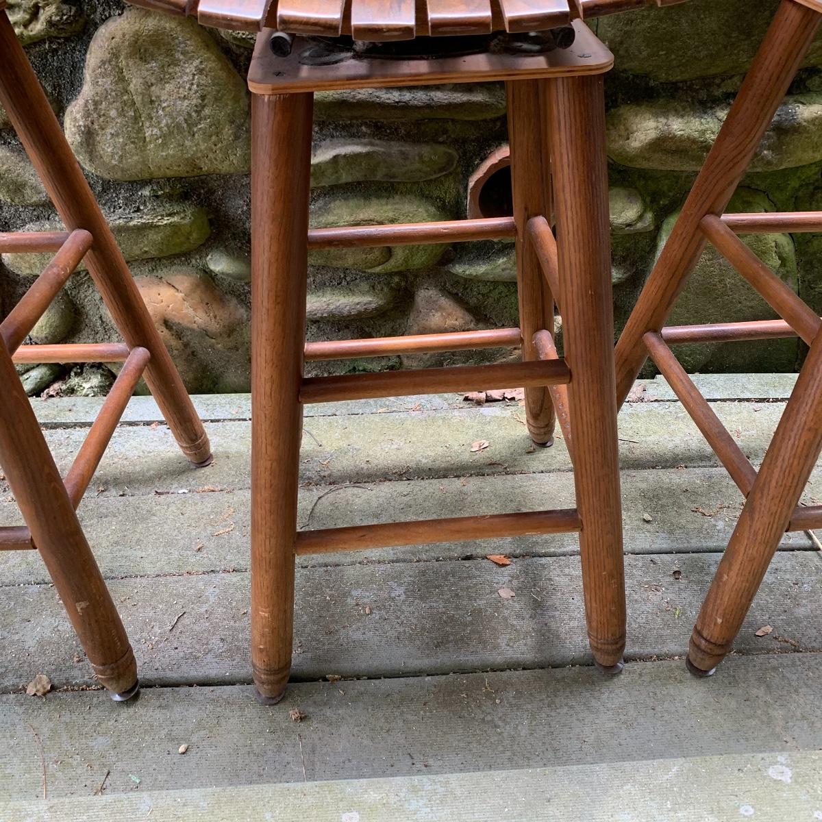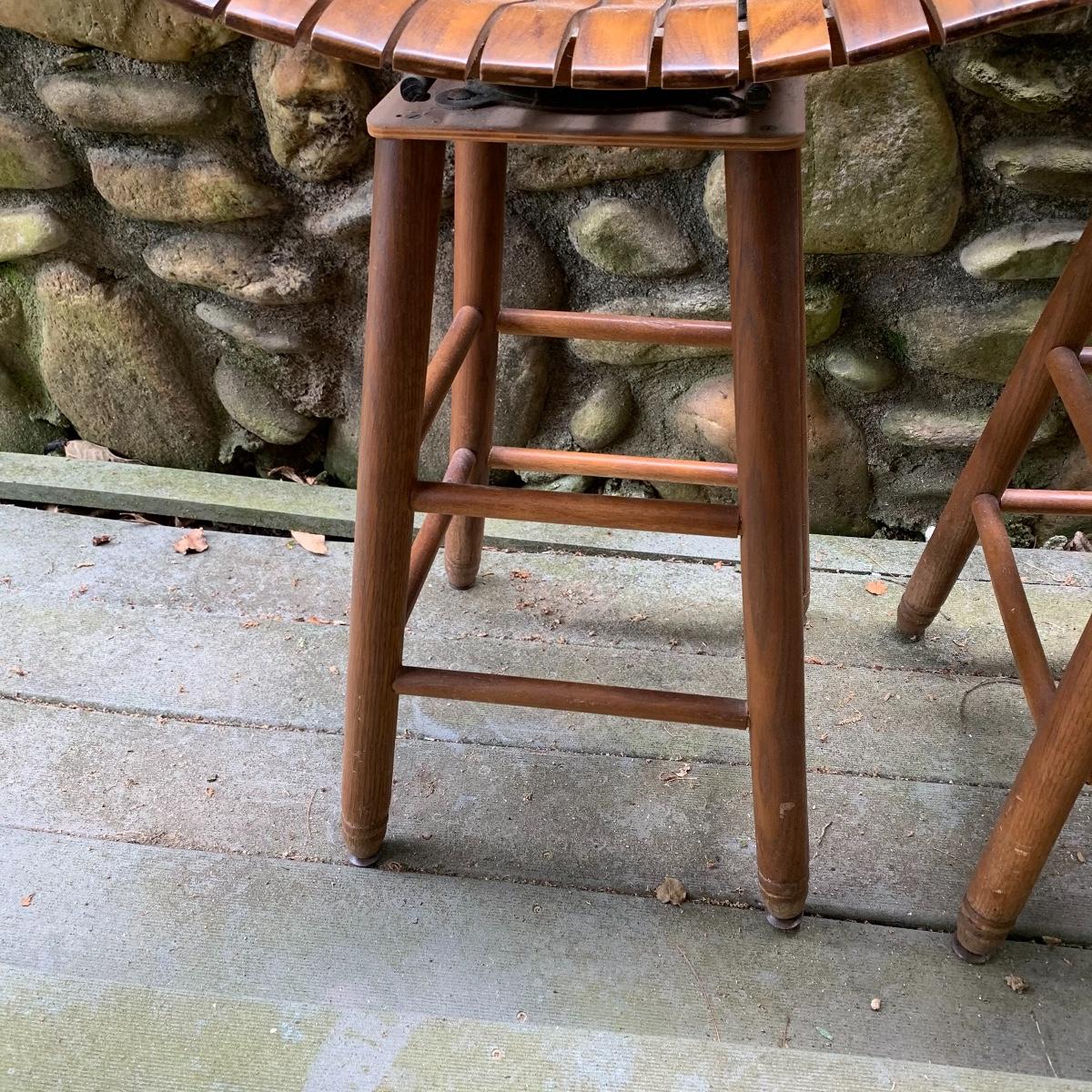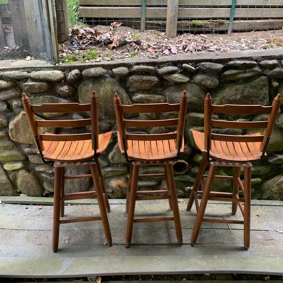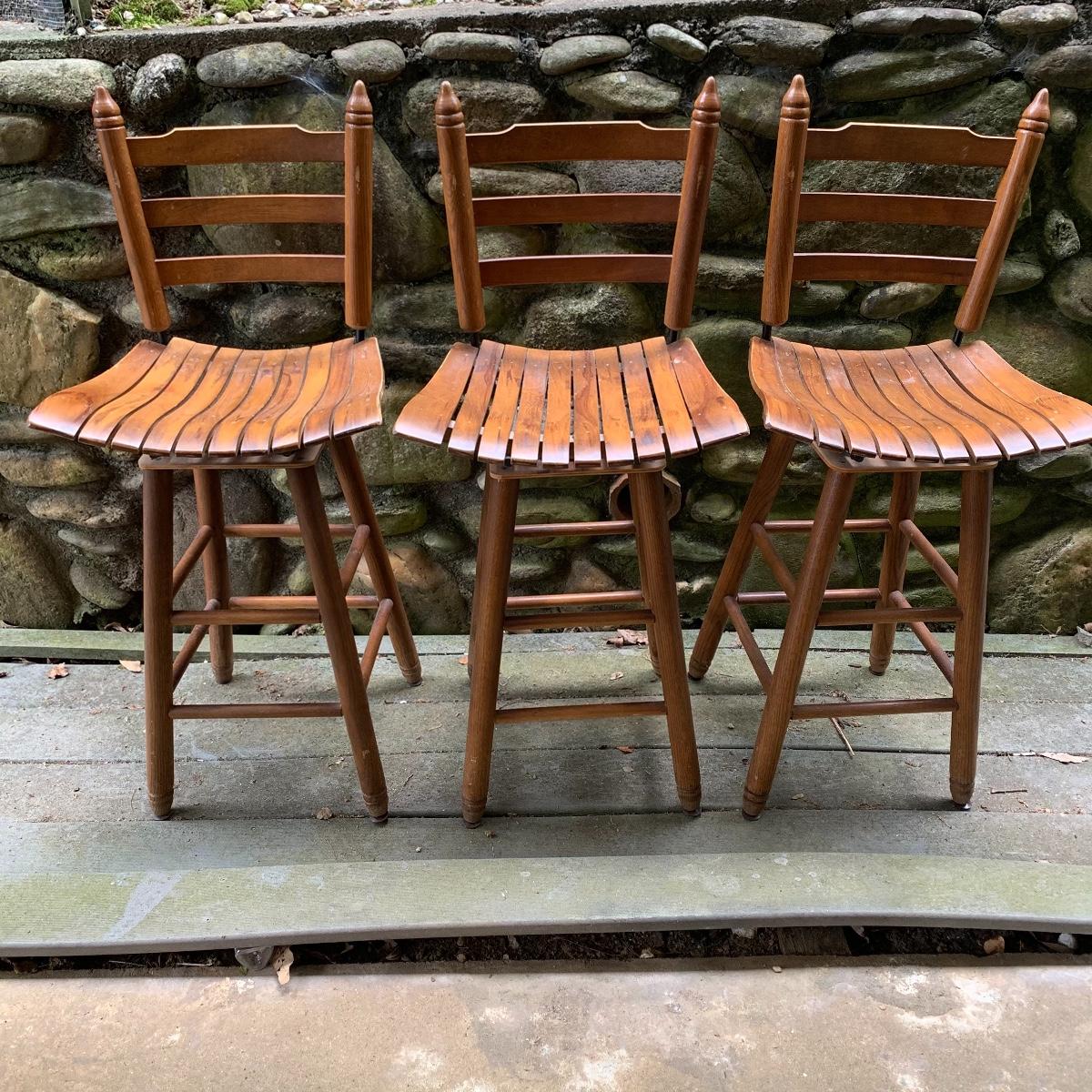 Take a load off and relax with a drink on one of these sturdy bar stools. These stools measure 39” tall, X 16” wide and the seat is 25” high. All three show some normal wear, but are in good condition overall. Local pickup only.