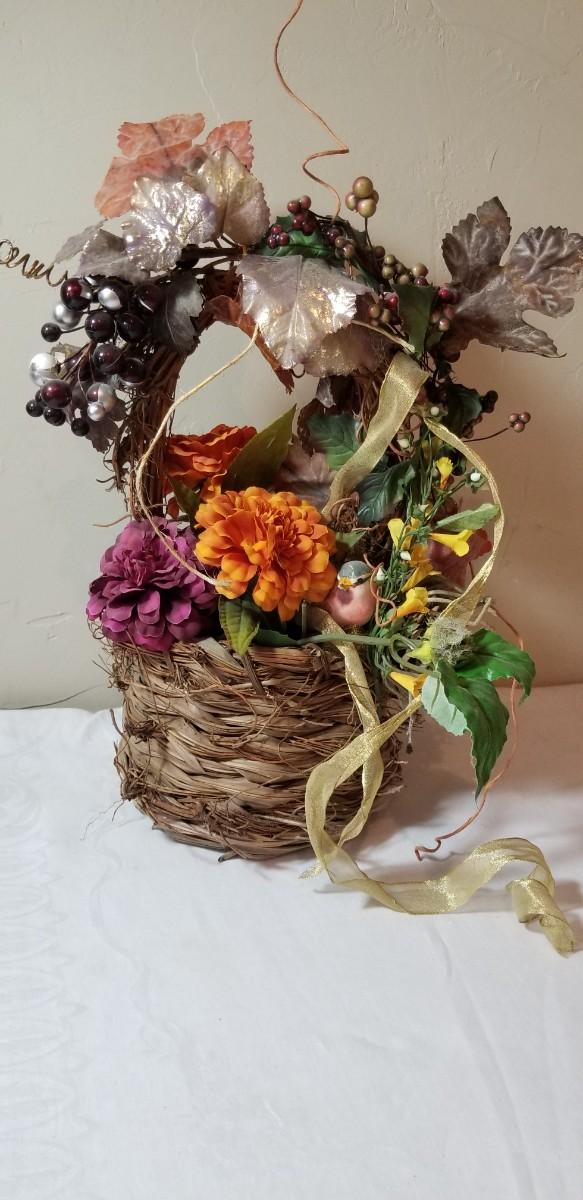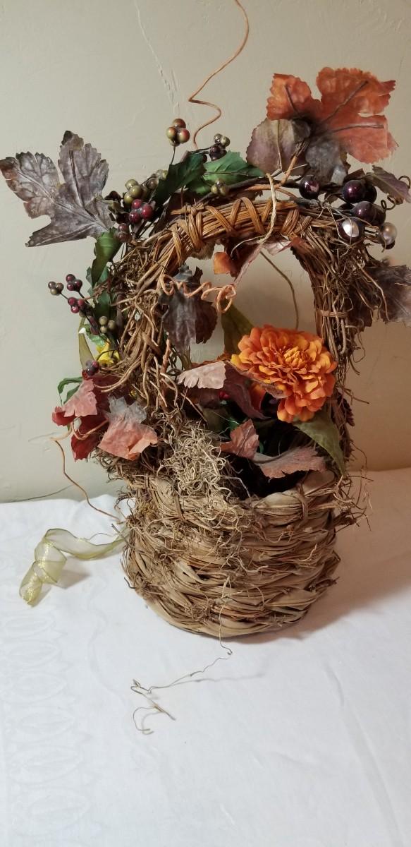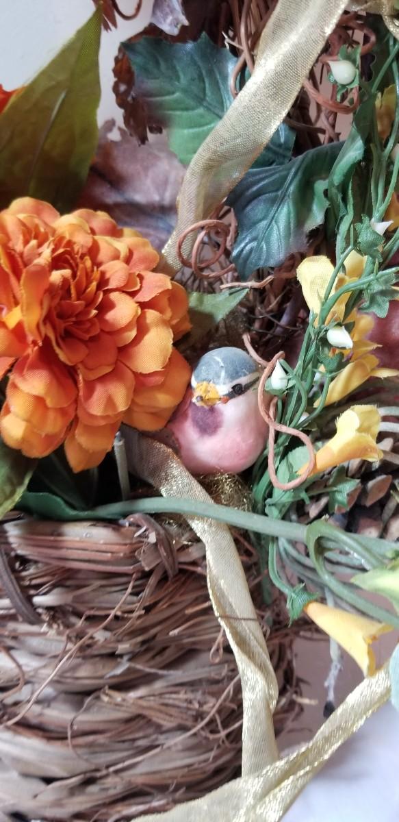 Lot 70: Silk Flowers with a Bird in a Basket