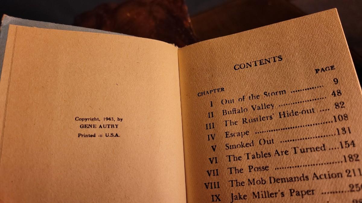 Vintage 1943 Edition of this GENE AUTRY western Tale. Does show some writing on the last page shown in photos.