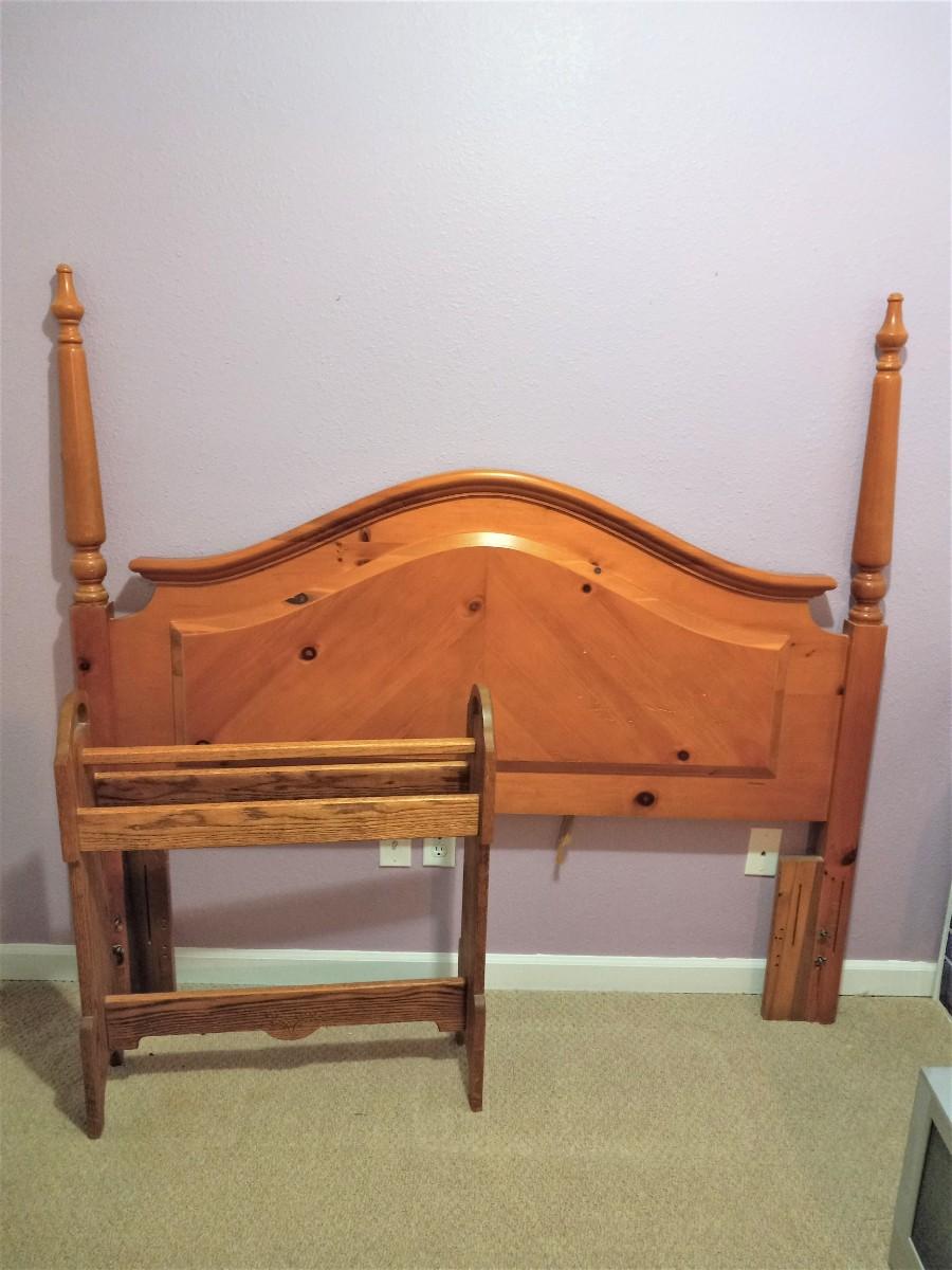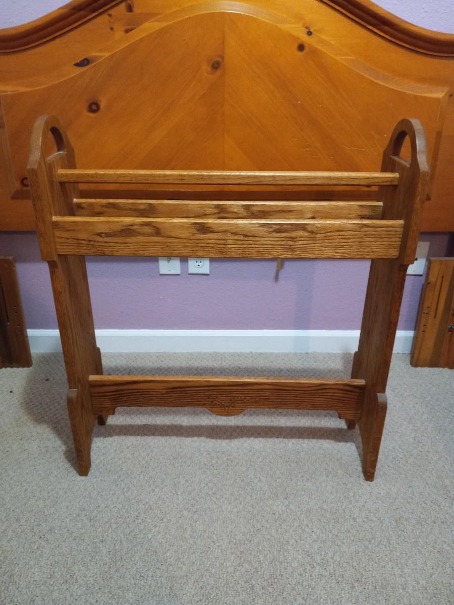 LOT 70 QUEEN SIZE HEADBOARD AND AFGHAN RACK