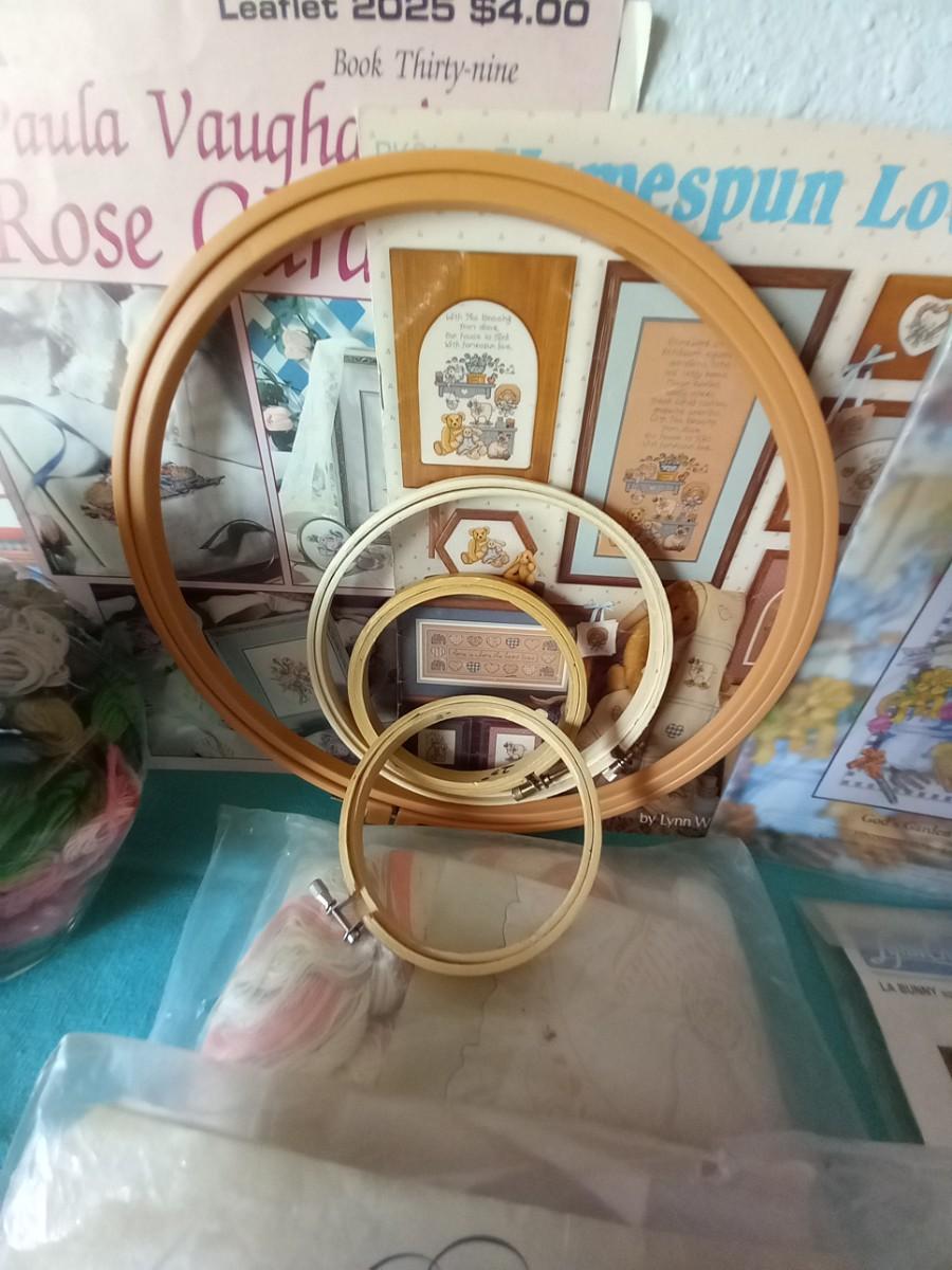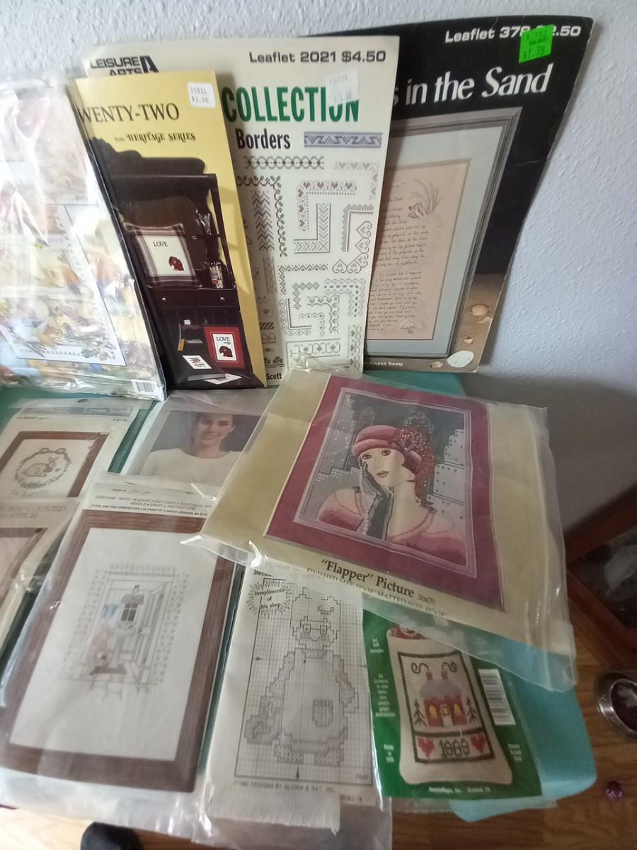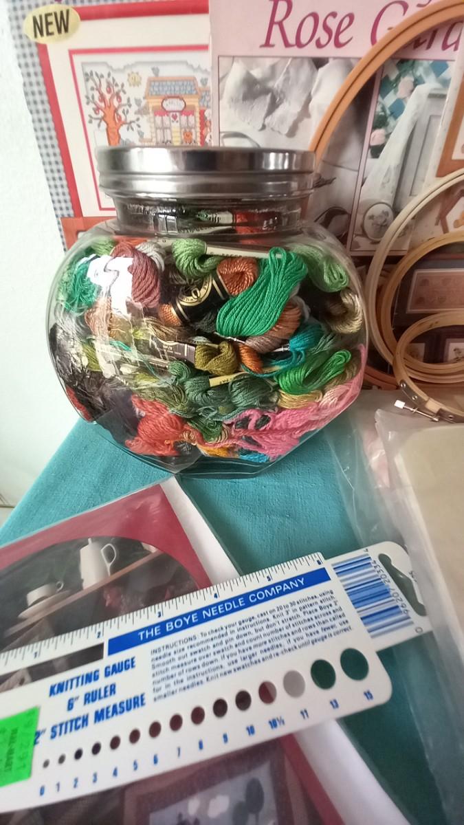 PROJECTS TO KEEP YOU BUSY FOR AWHILE. EMBROIDARY THREADS-LOOPS-PATTERN BOOKS-KITS -LOOP RUG HOOK AND MORE. MOST OF THE ITEMS ARE NEW