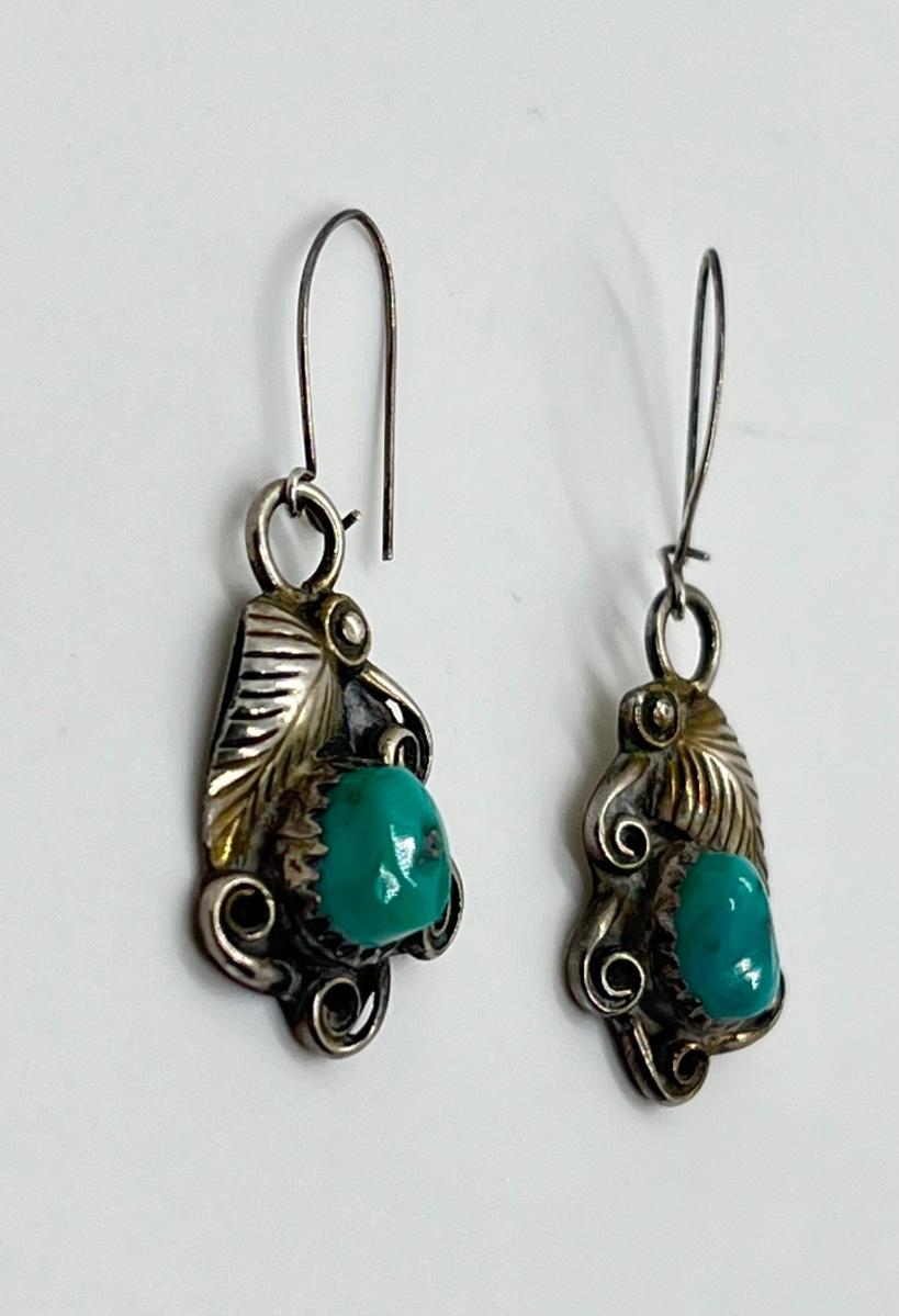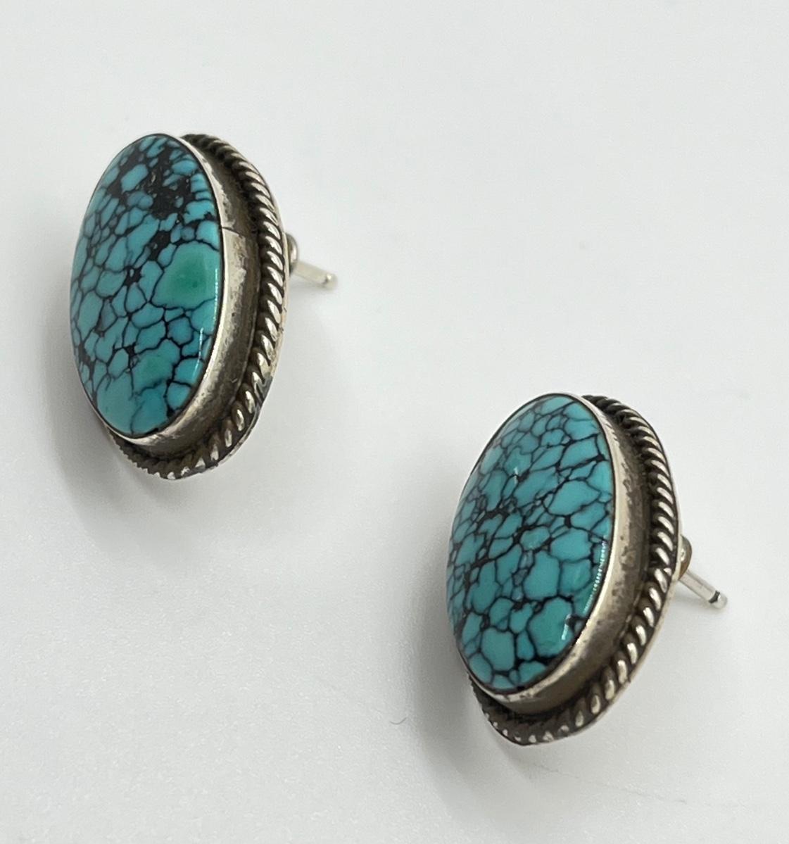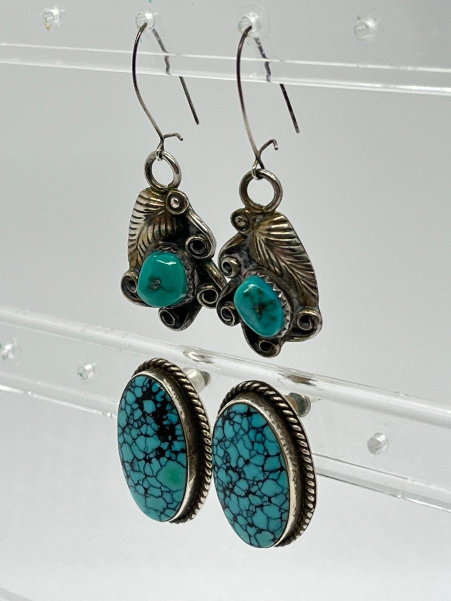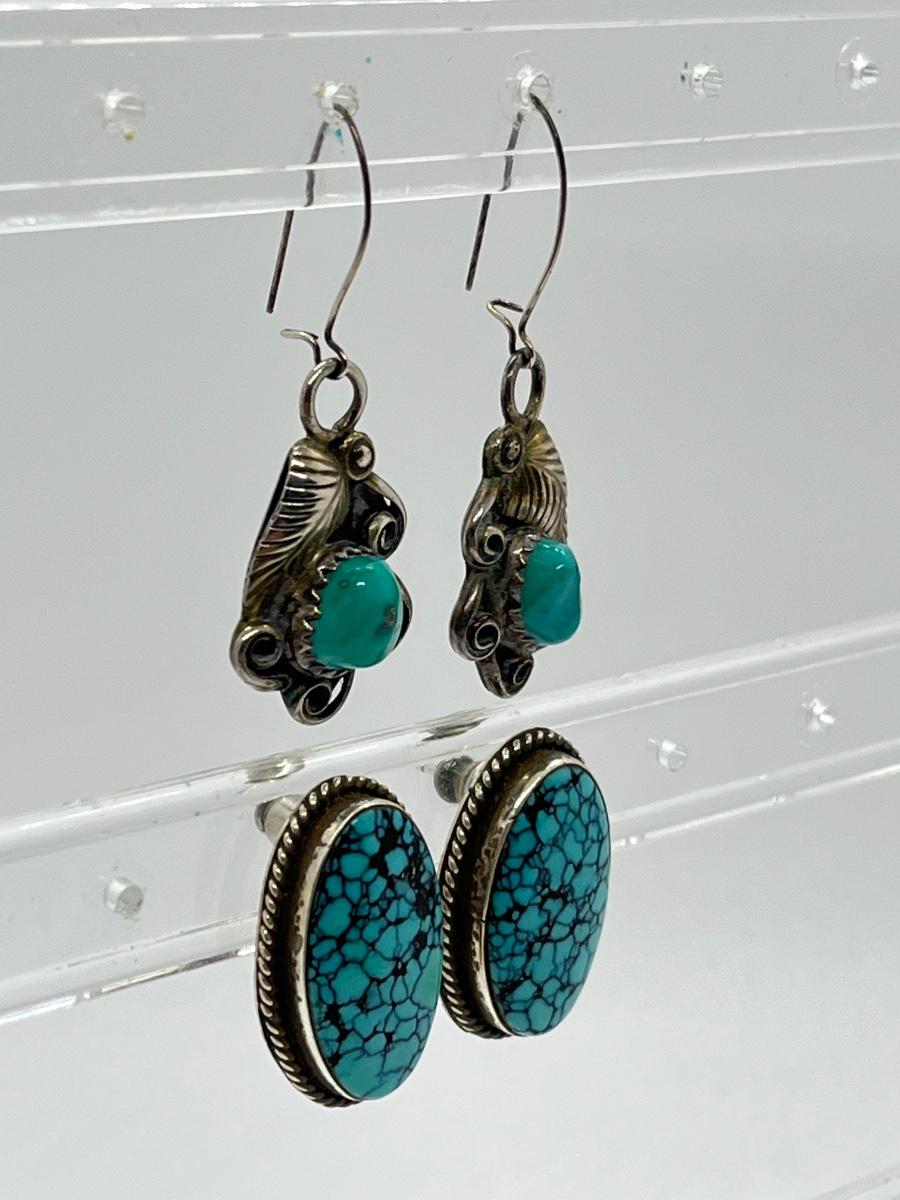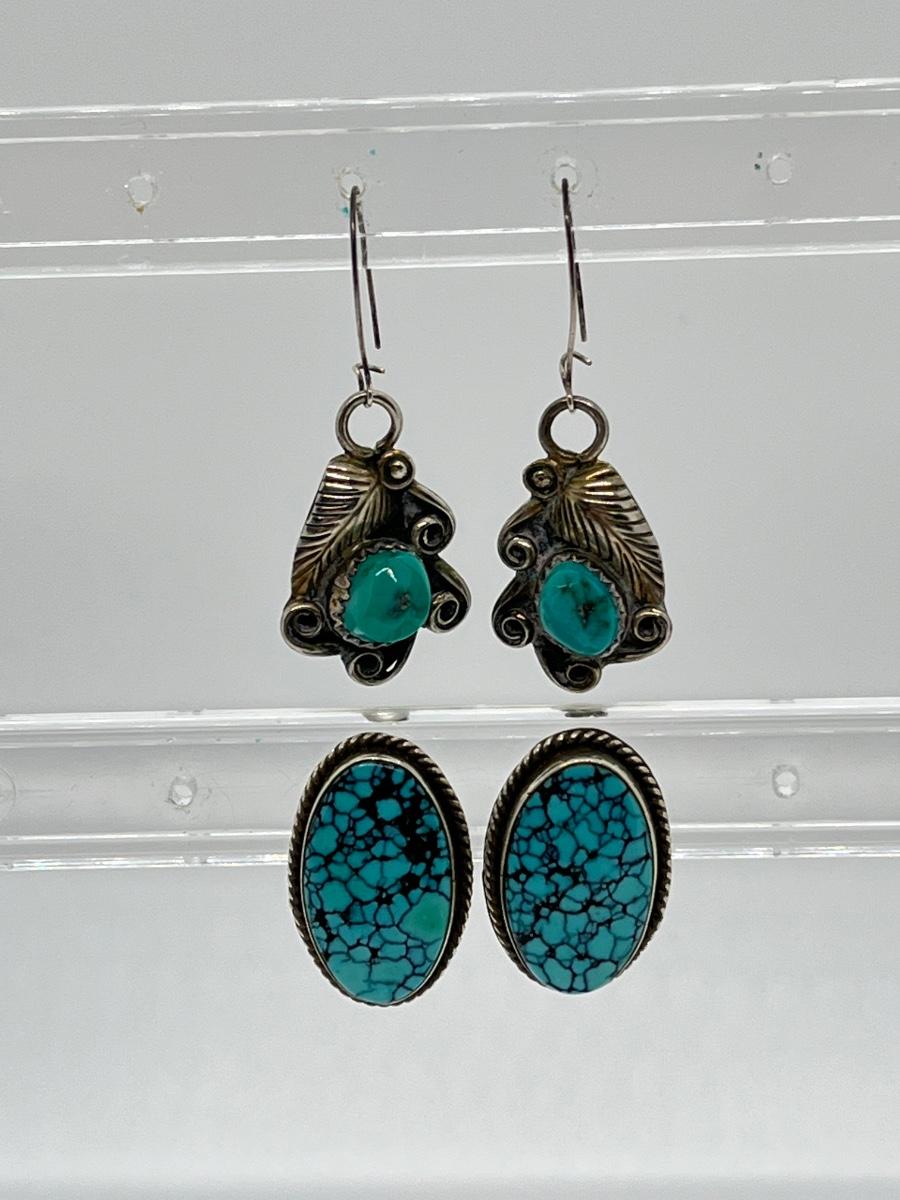 LOT 70: Two Pairs Navajo Sterling & Turquoise Pierced Earrings