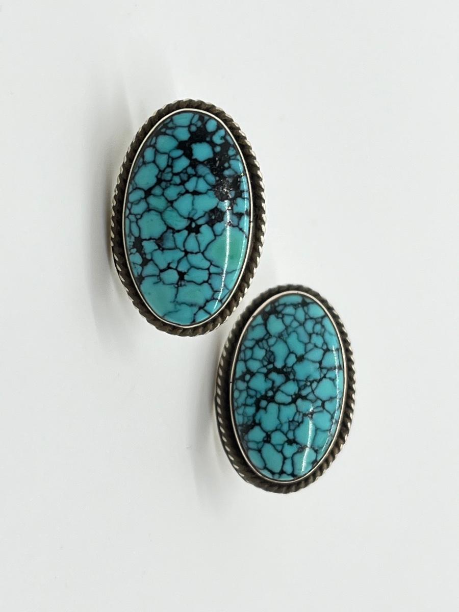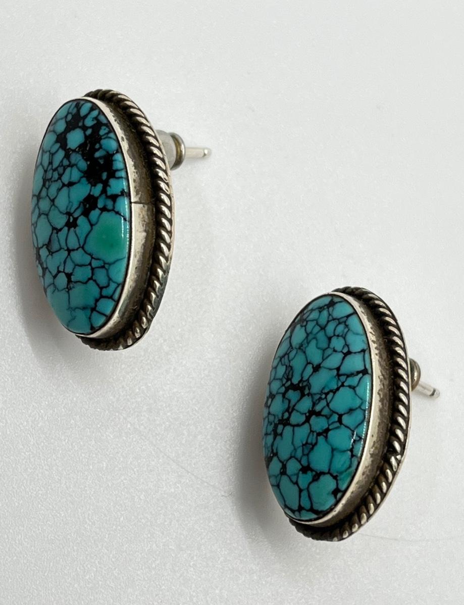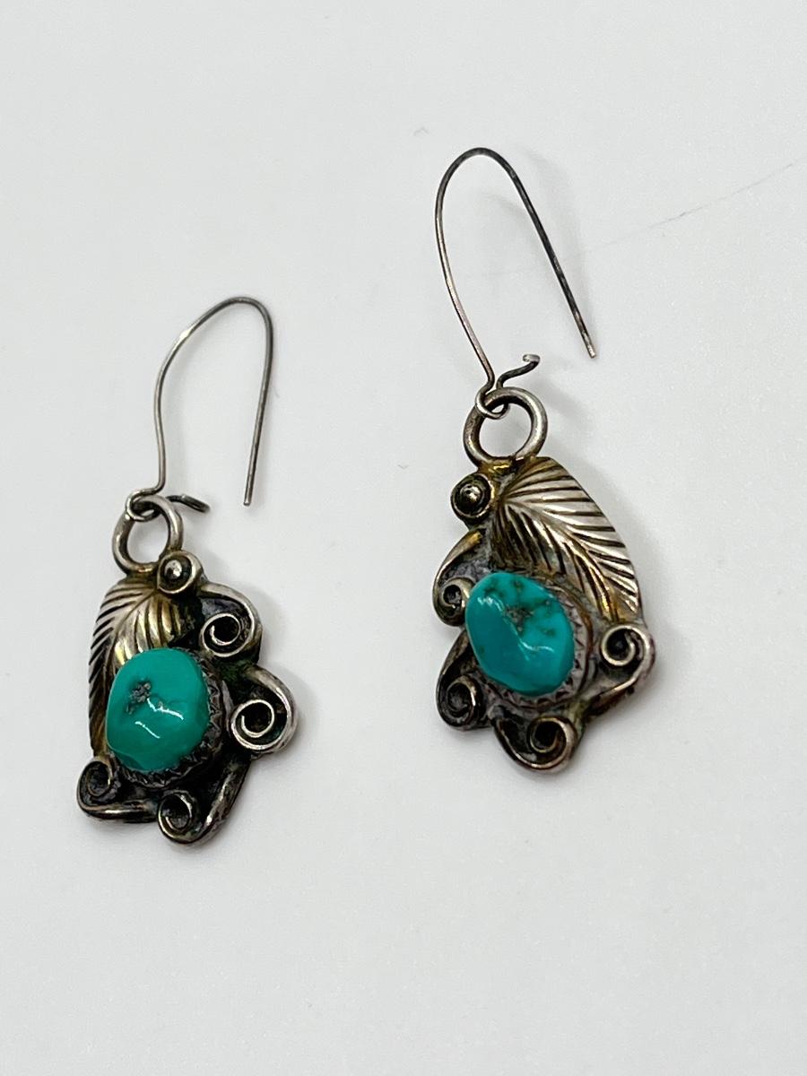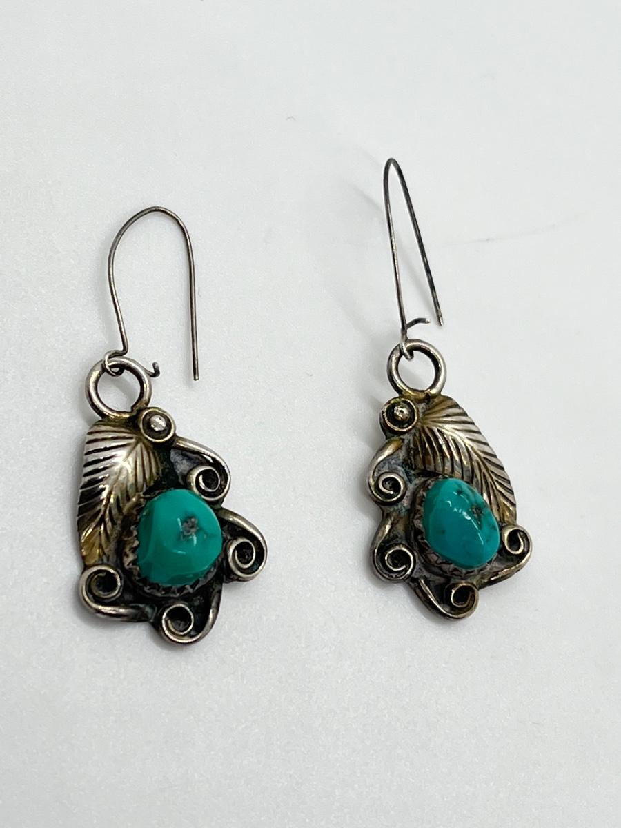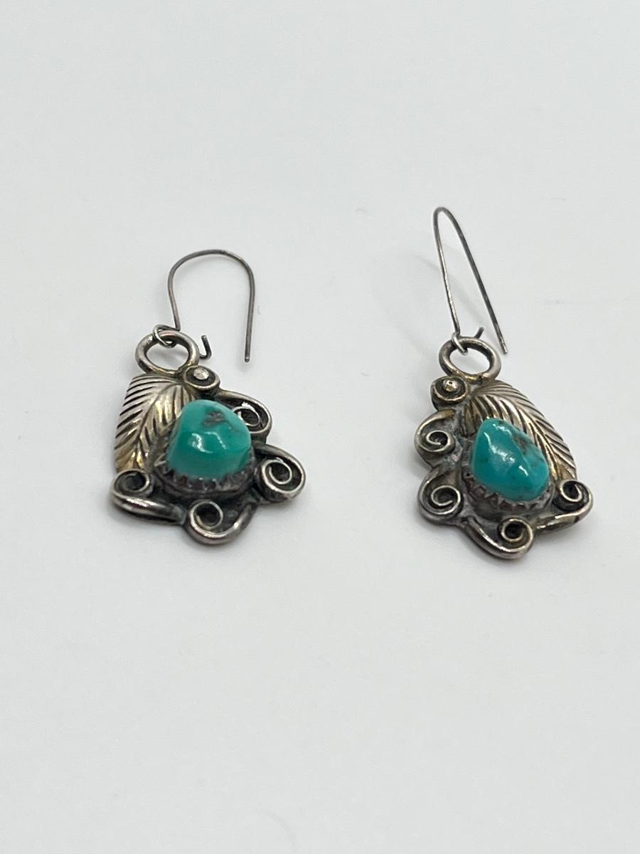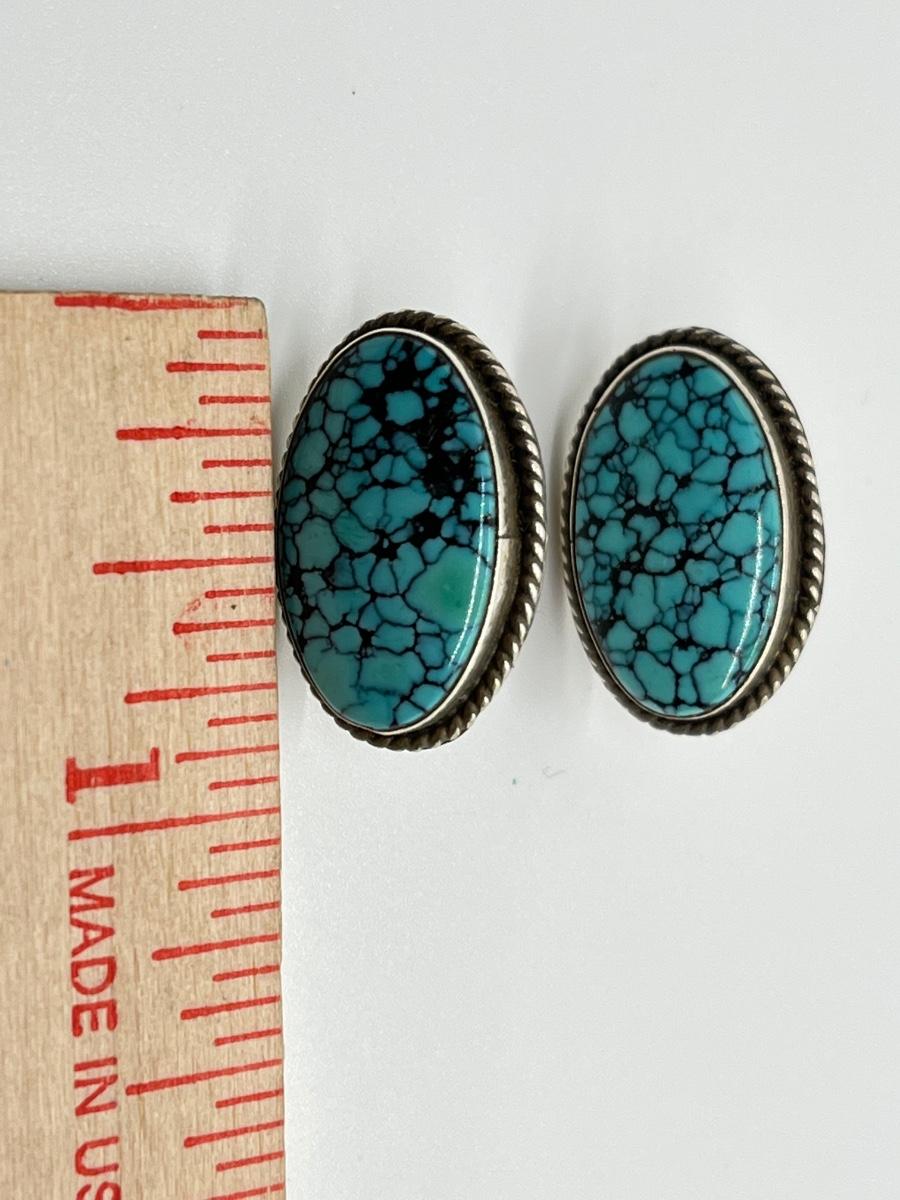 LOT 70: Two Pairs Navajo Sterling & Turquoise Pierced Earrings