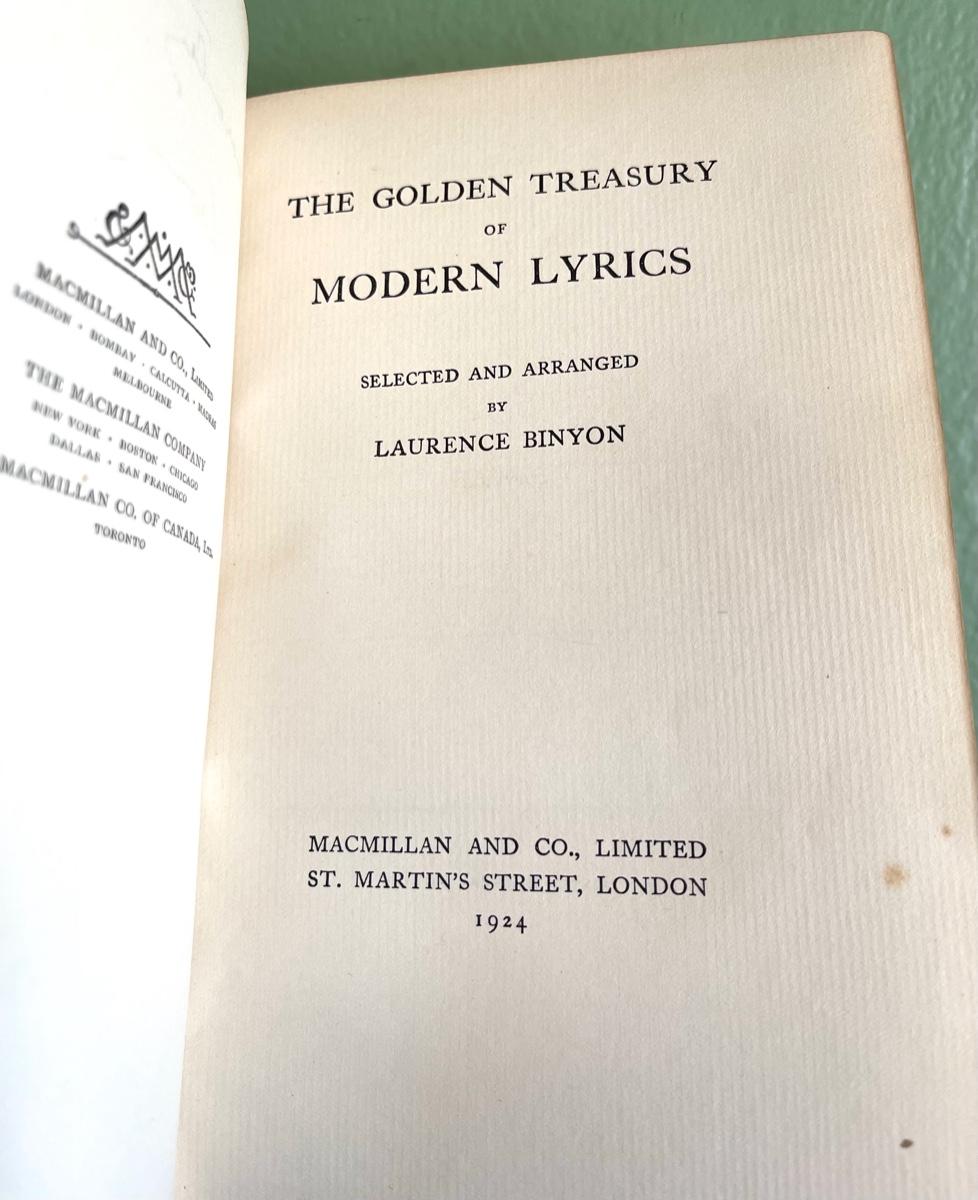 LOT 70 - Antique Book - Golden Treasury of Modern Lyrics 1924