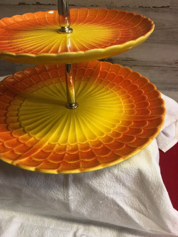 Lot 70 California Pottery 2 teir serving - neat!
