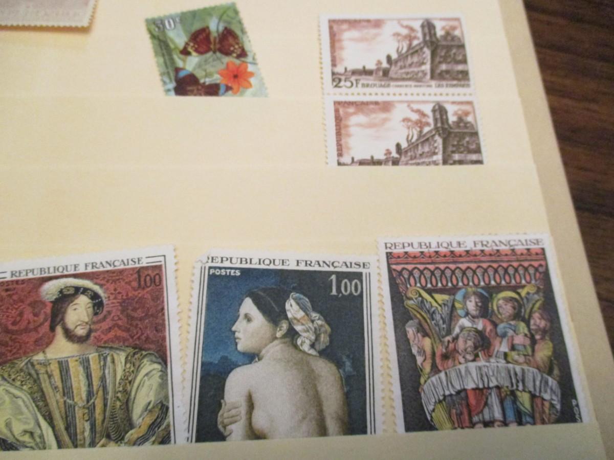 Included with the used book are a few stamps from Republique Francaise. 1952 5c Air mail revalued 6c. Please review photos