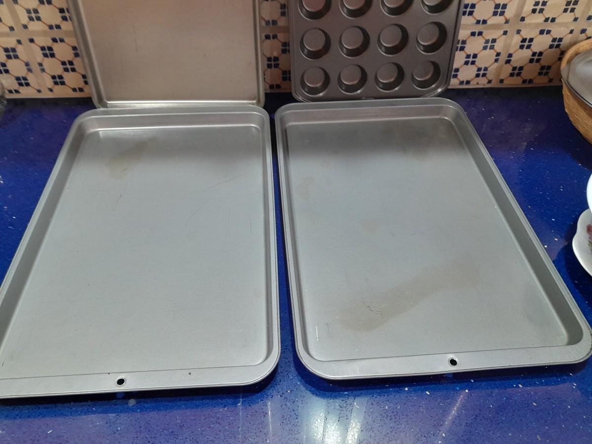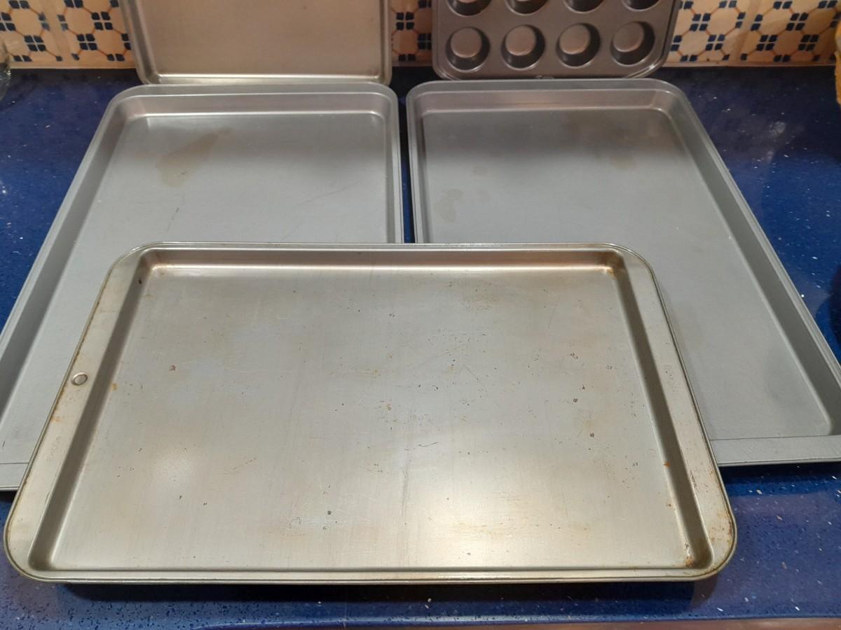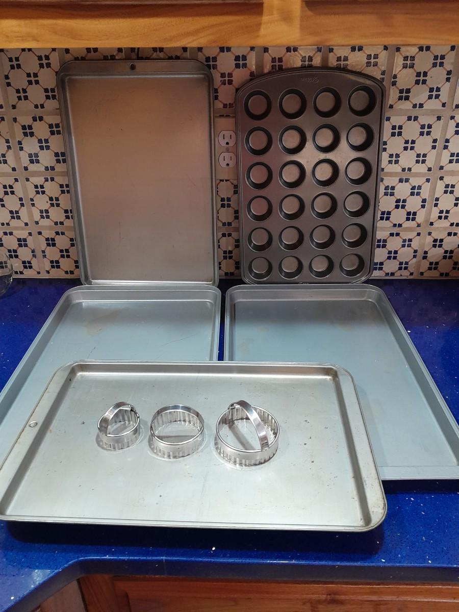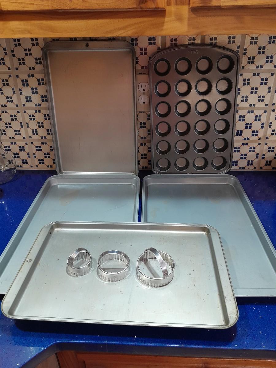 SEVERAL COOKIE SHEETS, AND A MUFFIN PAN