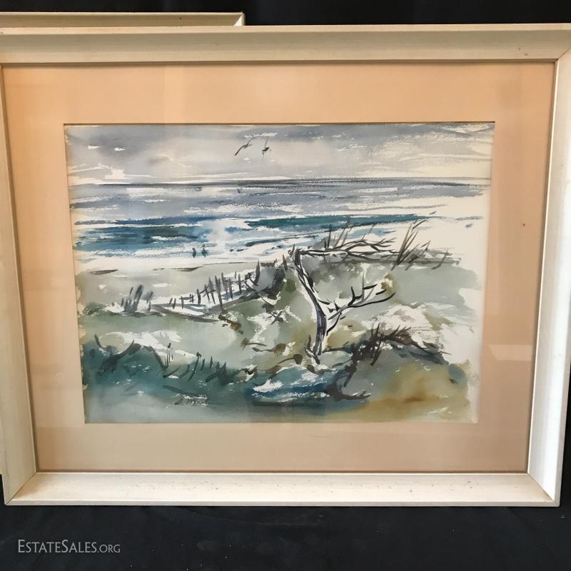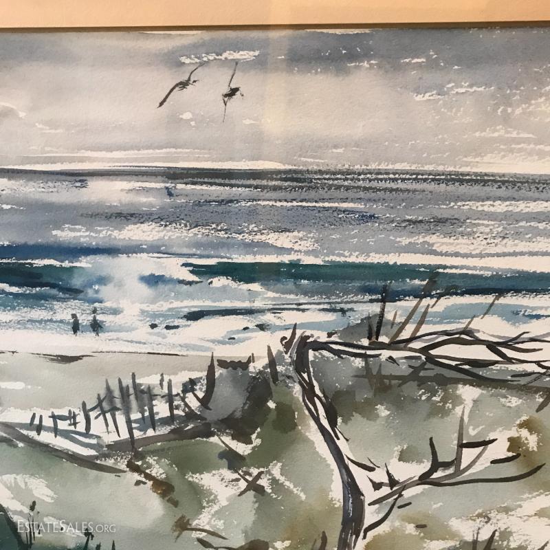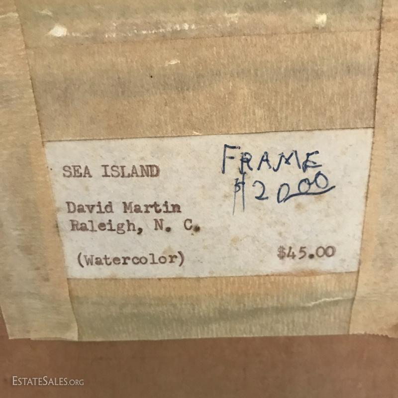 Lovely watercolor by David Martin. Artwork is called "Sea Island". Measures 33"l x 27"w. Light colored wood frame. Nice large print makes a statement for beach lovers. See photos for details. Shipping available or local pick up in Flat Rock, NC.