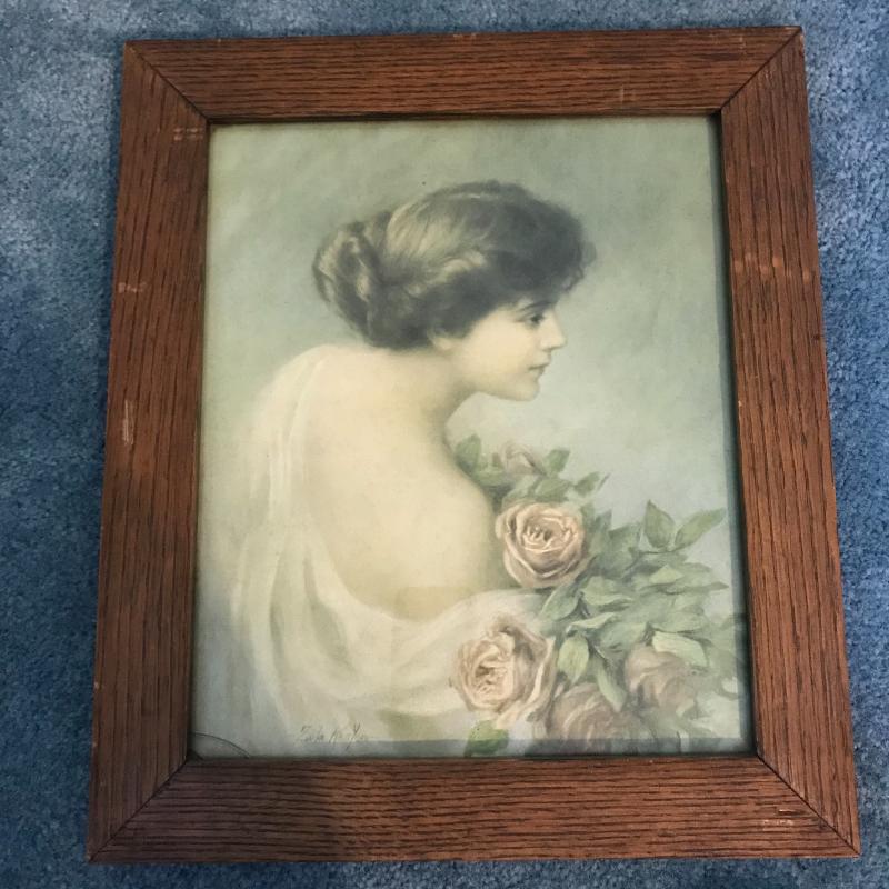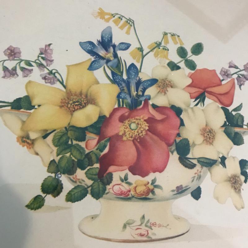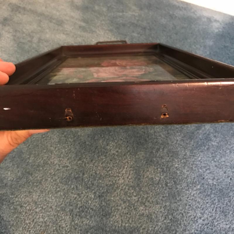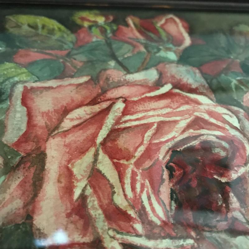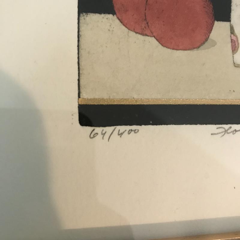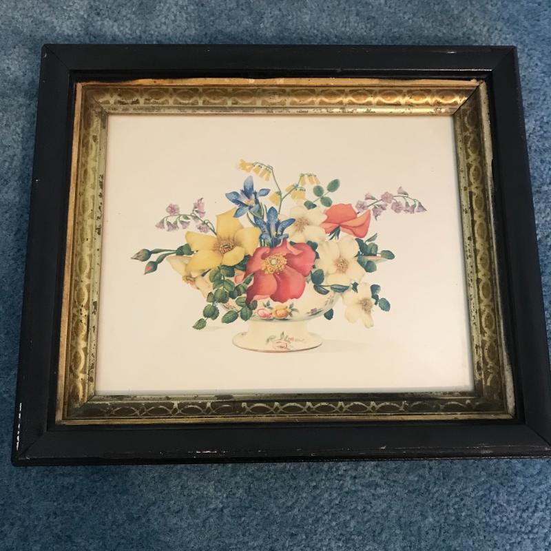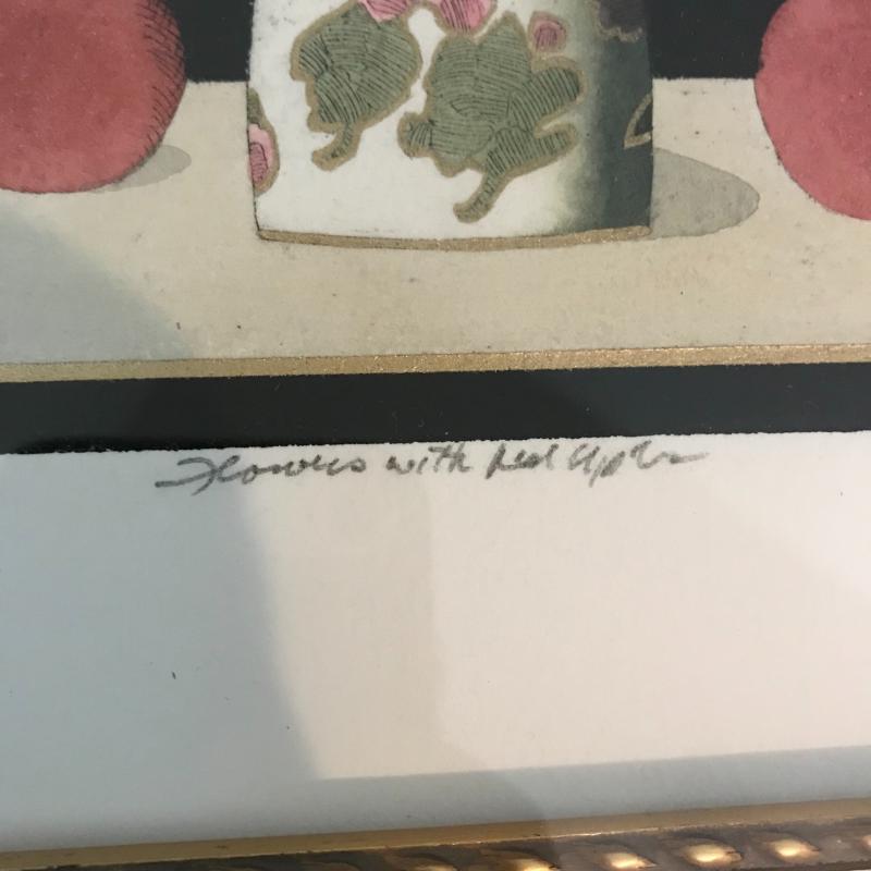Four delicately themed pieces of art, three signed and one numbered. The numbered piece measures approx. 15.25”x15.5”. The long one with pink flowers has a handle and glass top and can be used as a tray. Some wear and damage noted in photos, but in nice shape. Local pick up only in Arden, NC.