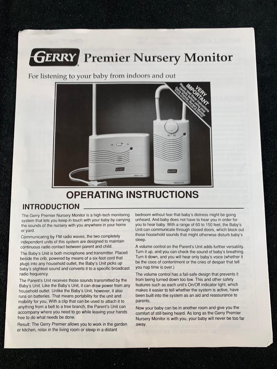 Brand new in box Gerry Premiere Baby Monitor w/2 channels and Parent unit. Model 603