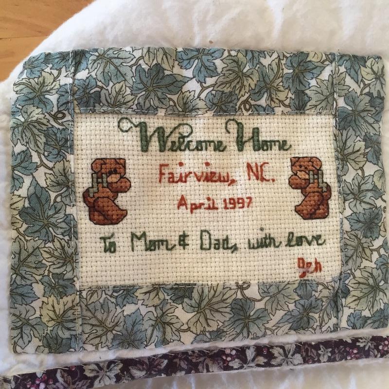 Handmade Hanging quilt for mom and dad. Beautiful quilt comes with a wooden rod so it can be displayed on any wall.