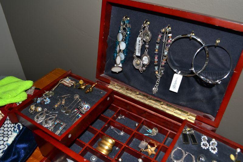 JEWELRY BOX AND LARGE VARIETY OF COSTUME JEWELRY
