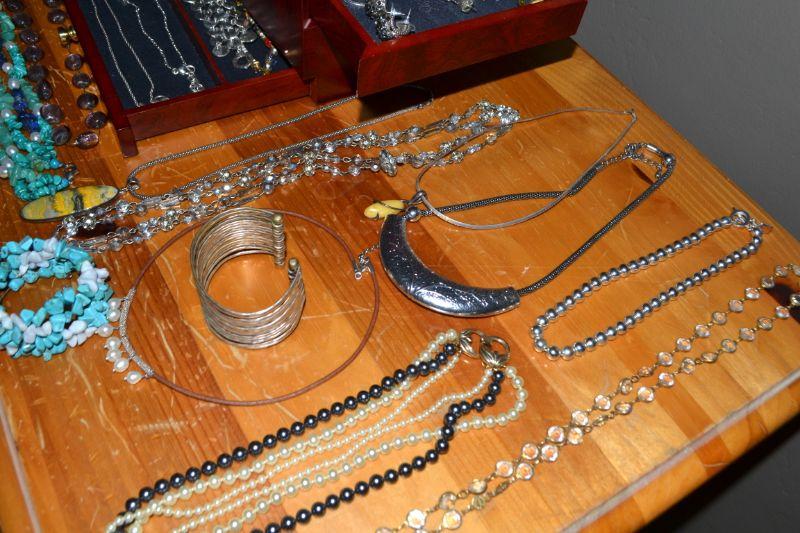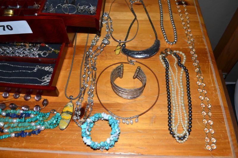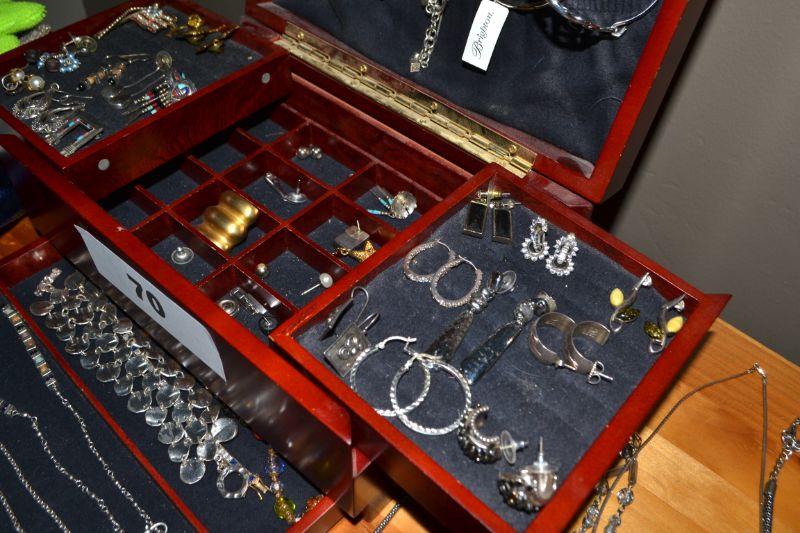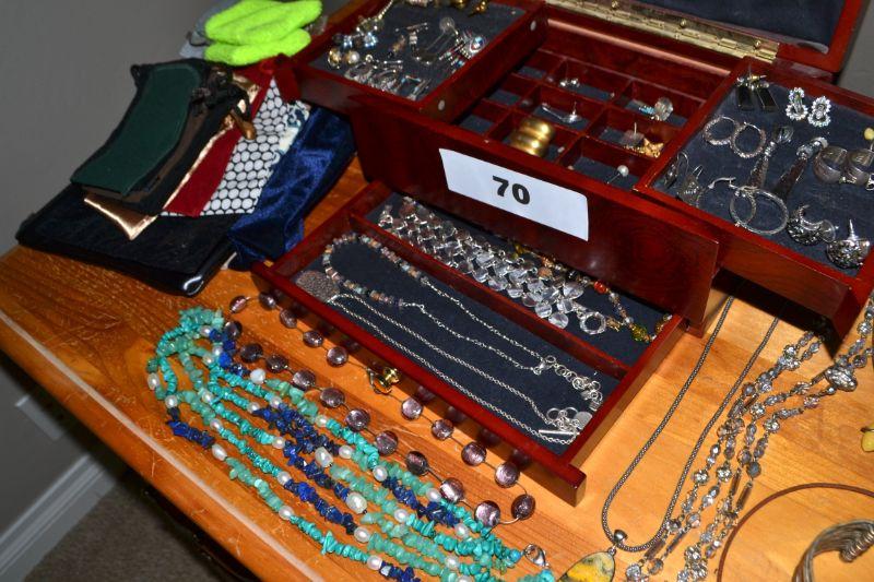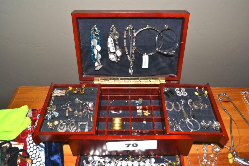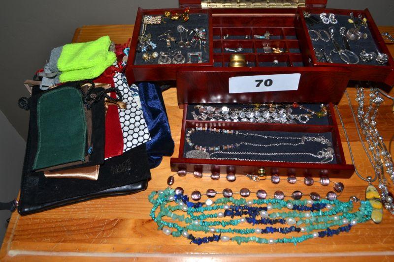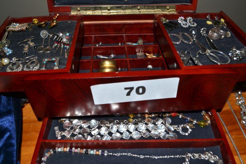 LOT 70. JEWELRY BOX AND LARGE VARIETY OF COSTUME JEWELRY