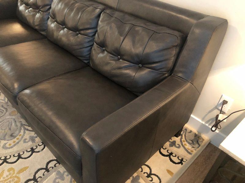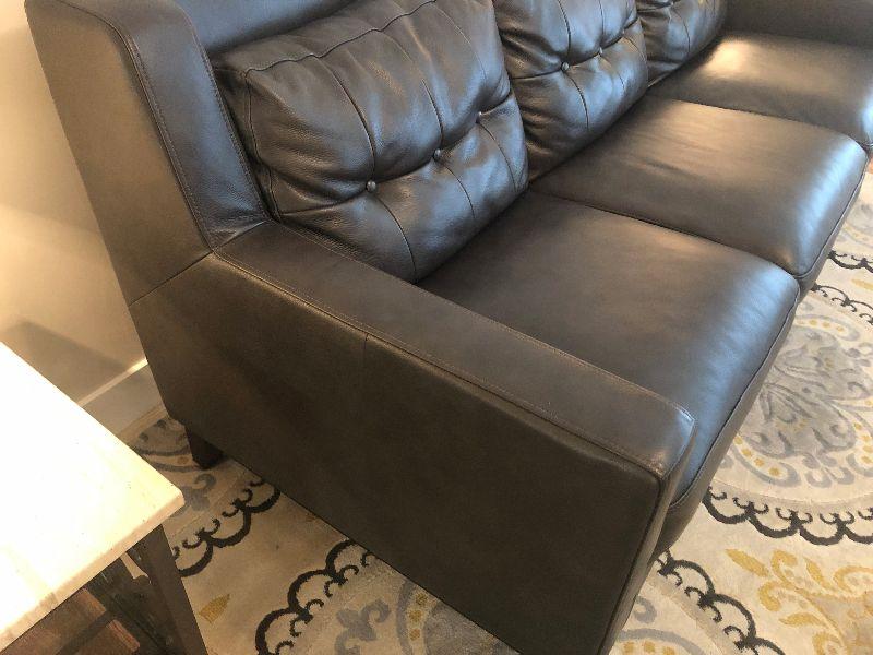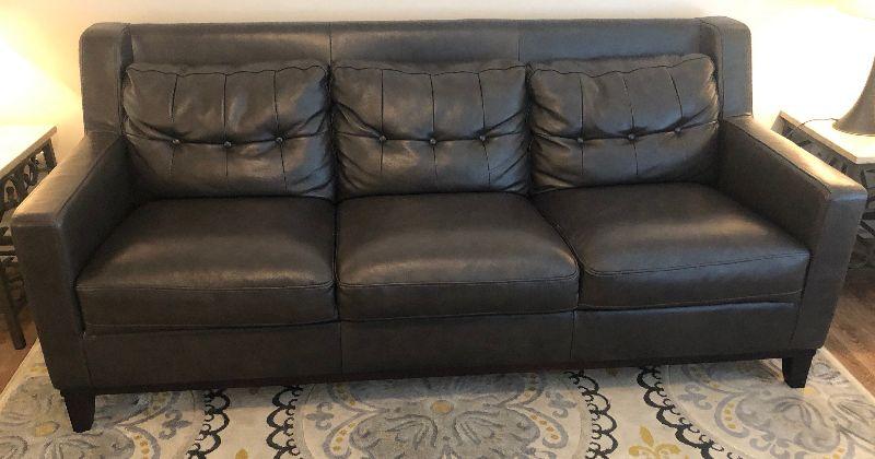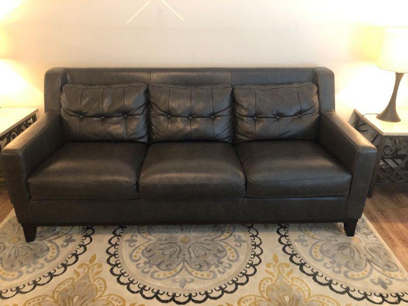 Lot #70 Leather Charcoal Sofa Model Home - Near Mint