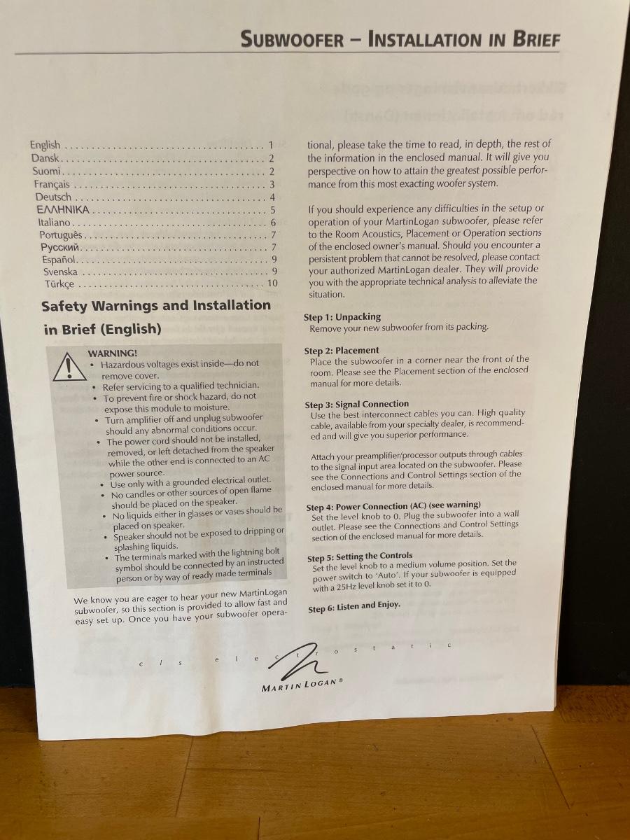 Martin Logan "Grotto" Servo-Control High Resolution Subwoofer System