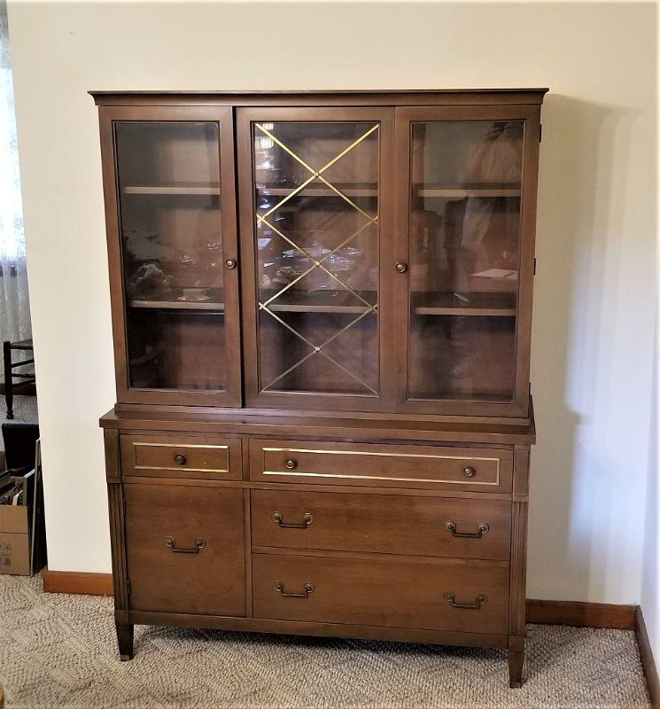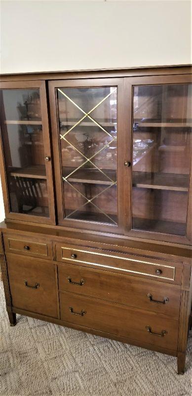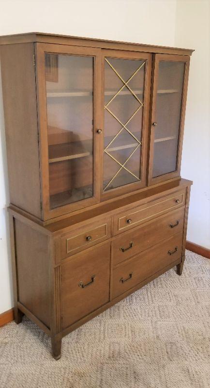Mid Century Modern China Cabinet - no maker noted. Clean. 4 feet wide, 17" deep, 65" tall. Lots of storage. Vintage, used condition.
