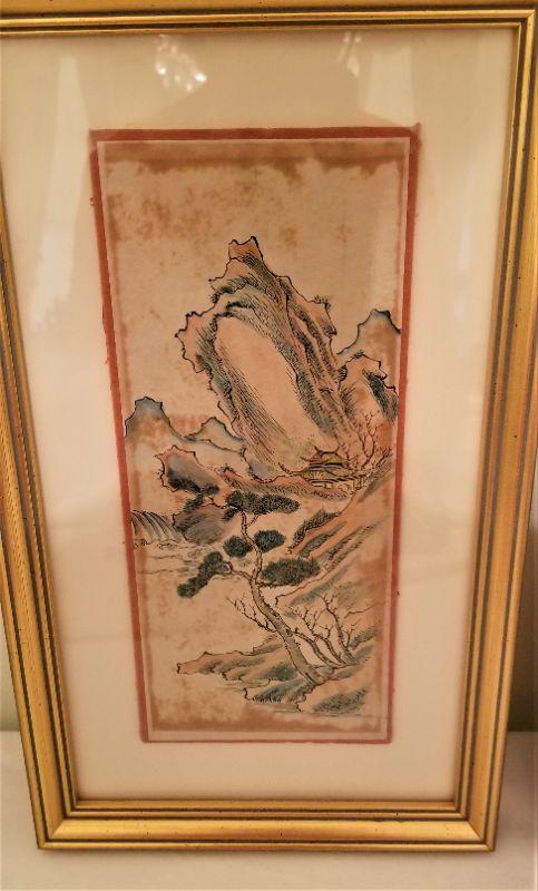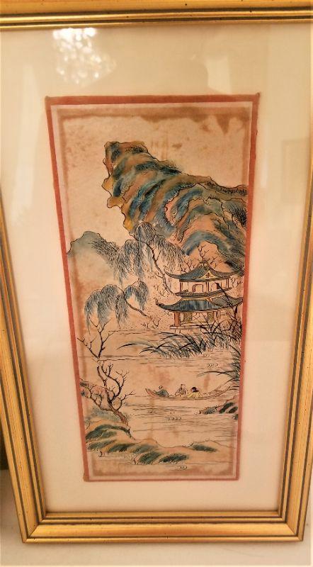 Nice pair of antique Chinese water color paintings on rice paper - professionally framed with conservation glass - each measures 14" x 8.25". Antique condition.