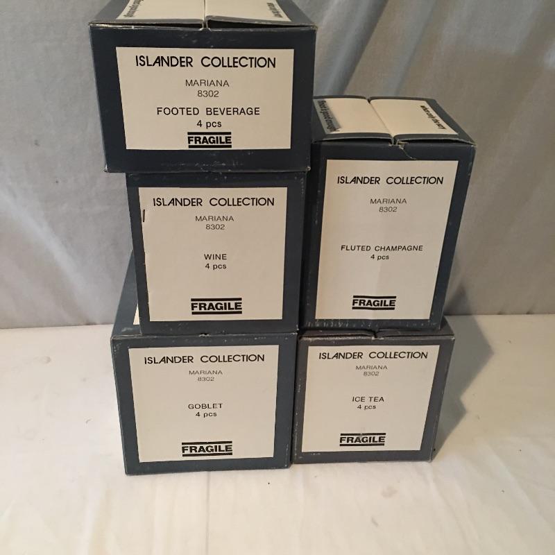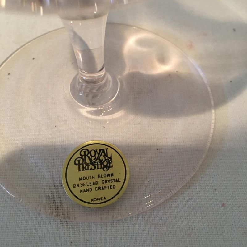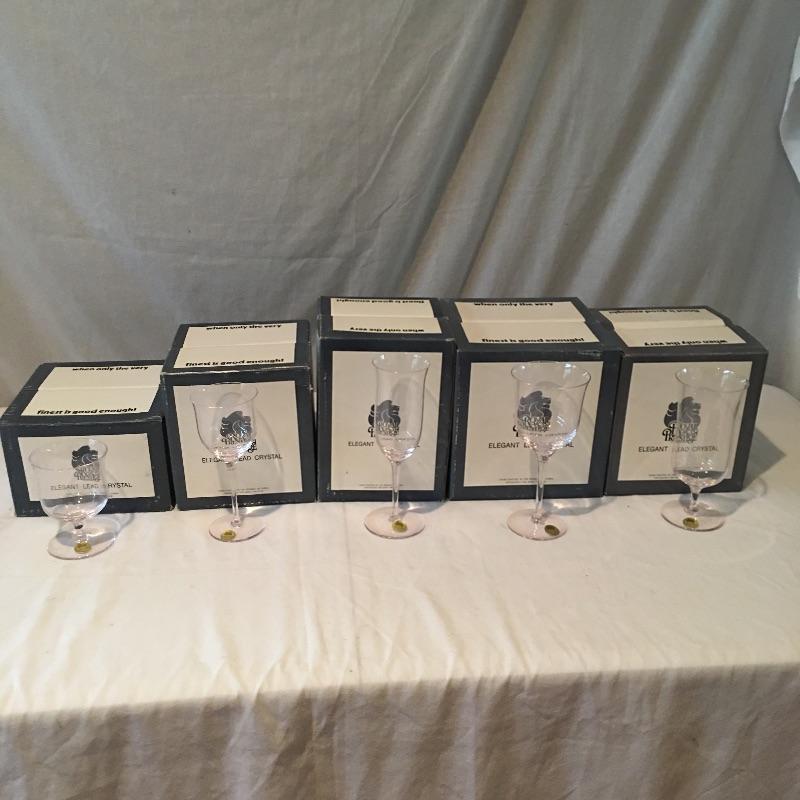 Royal prestige lead crystal blown glass array includes four footed beverage, four goblet, four fluted champagne, four ice tea and three wine glasses. Treat yourself to these lovely blown glasses.