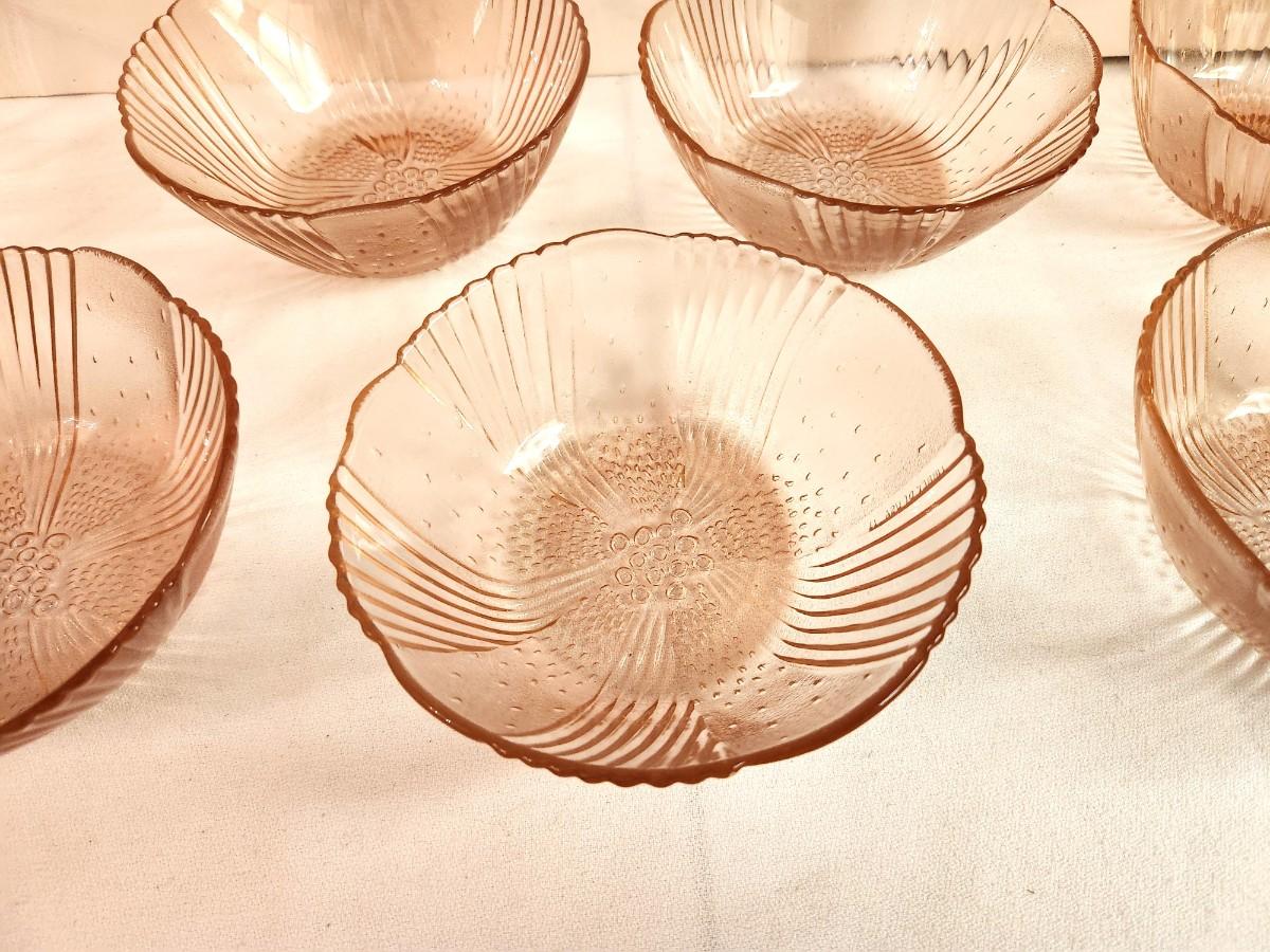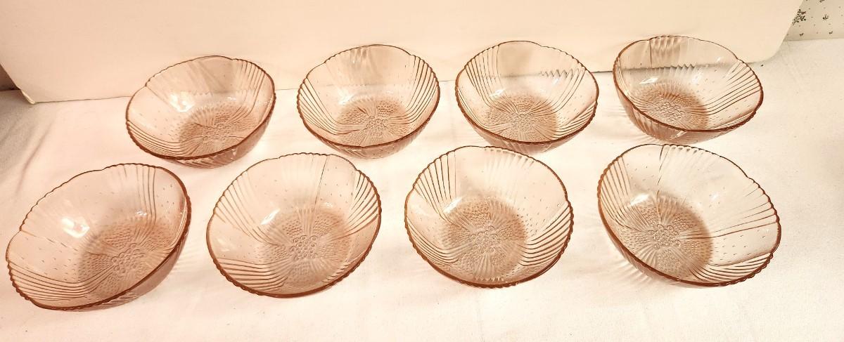 Set of 8 vintage Libbey Glass pink berry bowls - "Harmony" pattern. All in good condition.